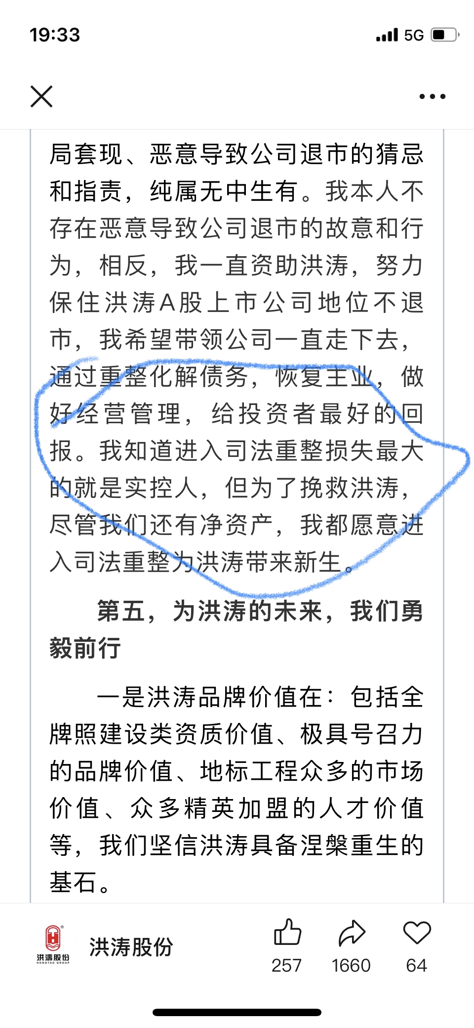刘总不想重整在公开信说得很清楚了。人家有净资产根本不想重整还有大量土地房产。资不