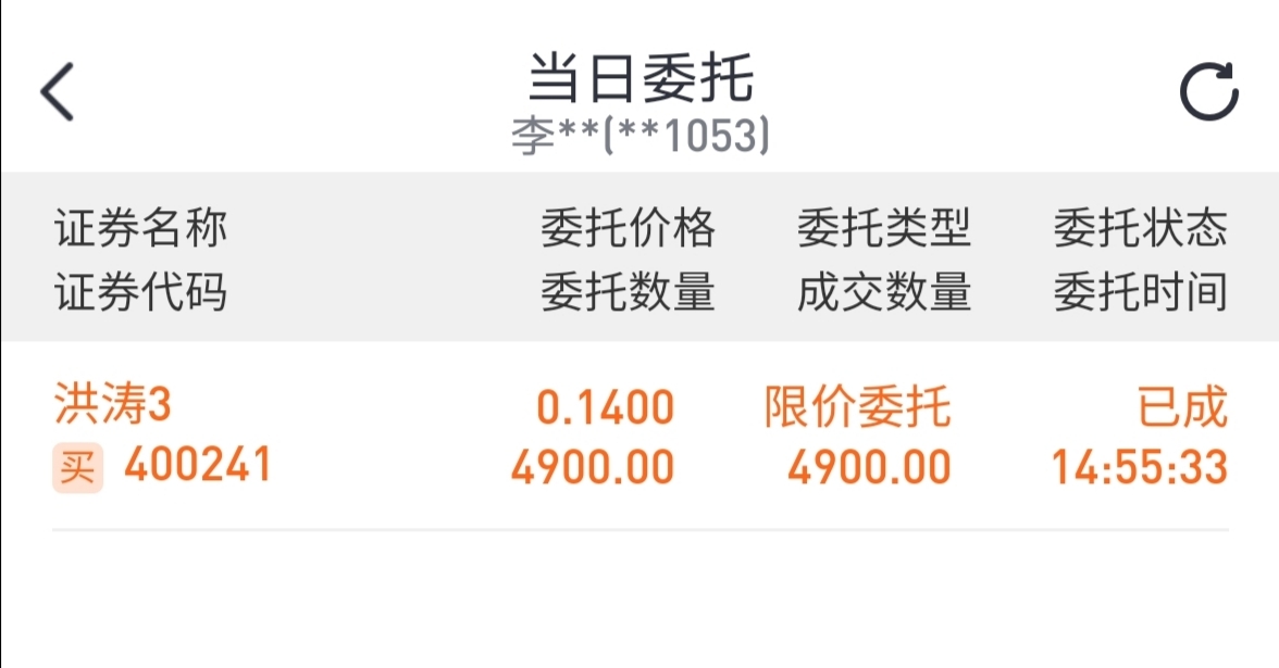 $洪涛3(SZ400241)$ 收盘前临时决定买入的,居然被我4900股拉到涨停