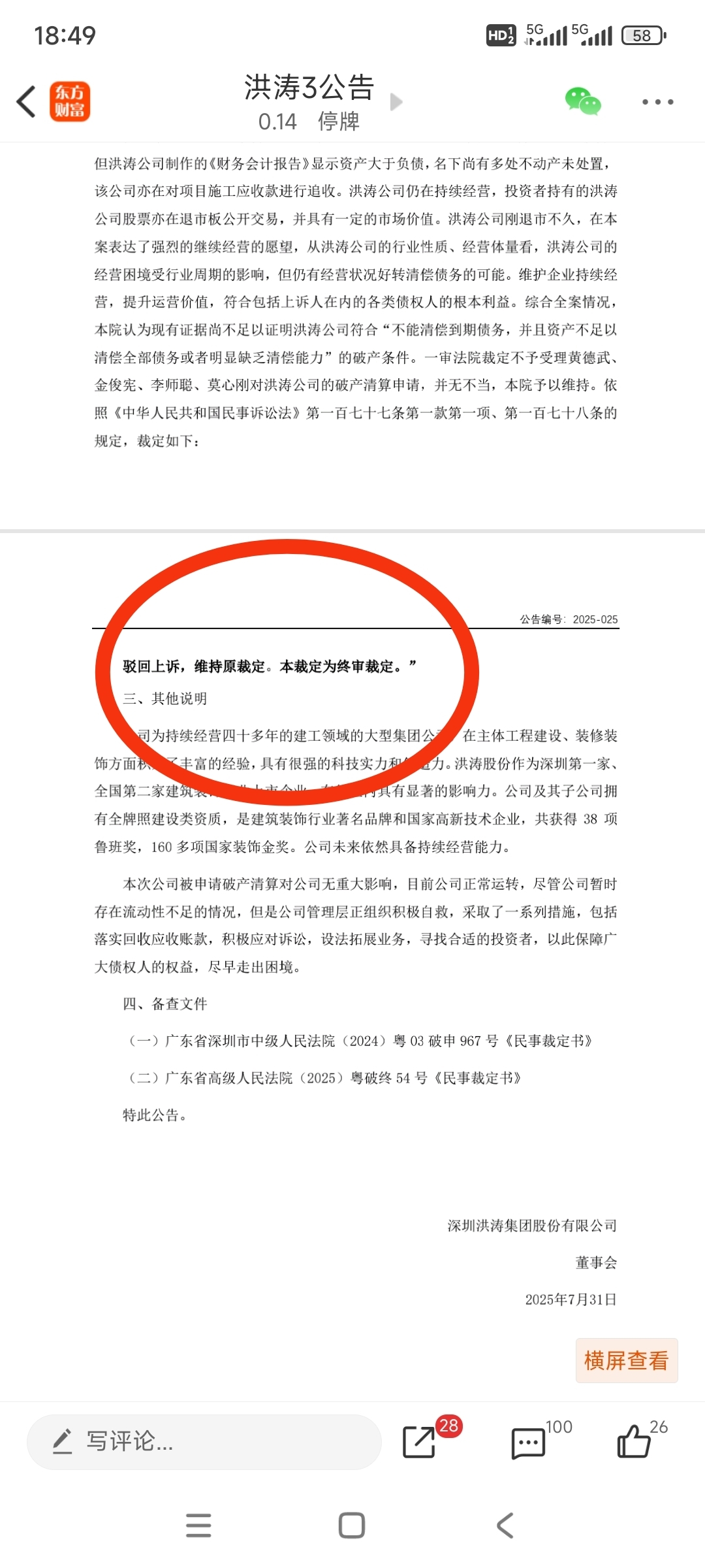 $洪涛3(SZ400241)$ 黄德武,你别在这没事找事,缺钱了,和我说,我给你几毛钱,别耽误洪涛重组回主板。已经是终审了。你还在这找什么存在感。