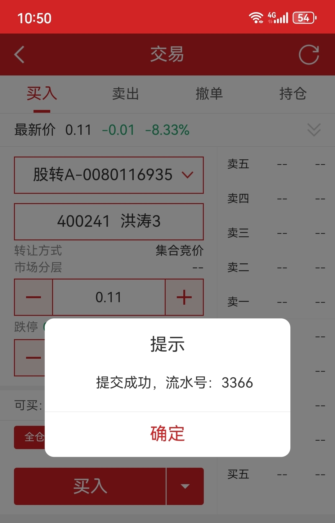 $洪涛3(SZ400241)$ 序号3366,希望成交!