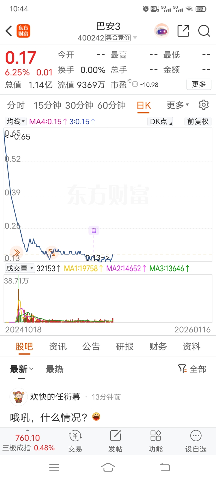 温馨提示: 1.根据《证券法》规定,禁止编造、传播虚假信息或者误导性信息,扰乱证券市场;2.用户在本社区发表的所有资料、言论等仅代表个人观点,与本网站立场无关,不对您构成任何投资建议。用户应基于自己的独立判断,自行决定证券投资并承担相应风险。《东方财富社区管理规定》