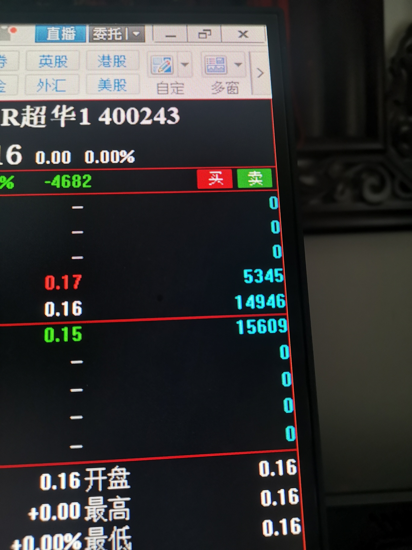 超华今天的成交量没有完成的成交数据,请看图片就差一分钱,买的卖的就差一分钱。不至