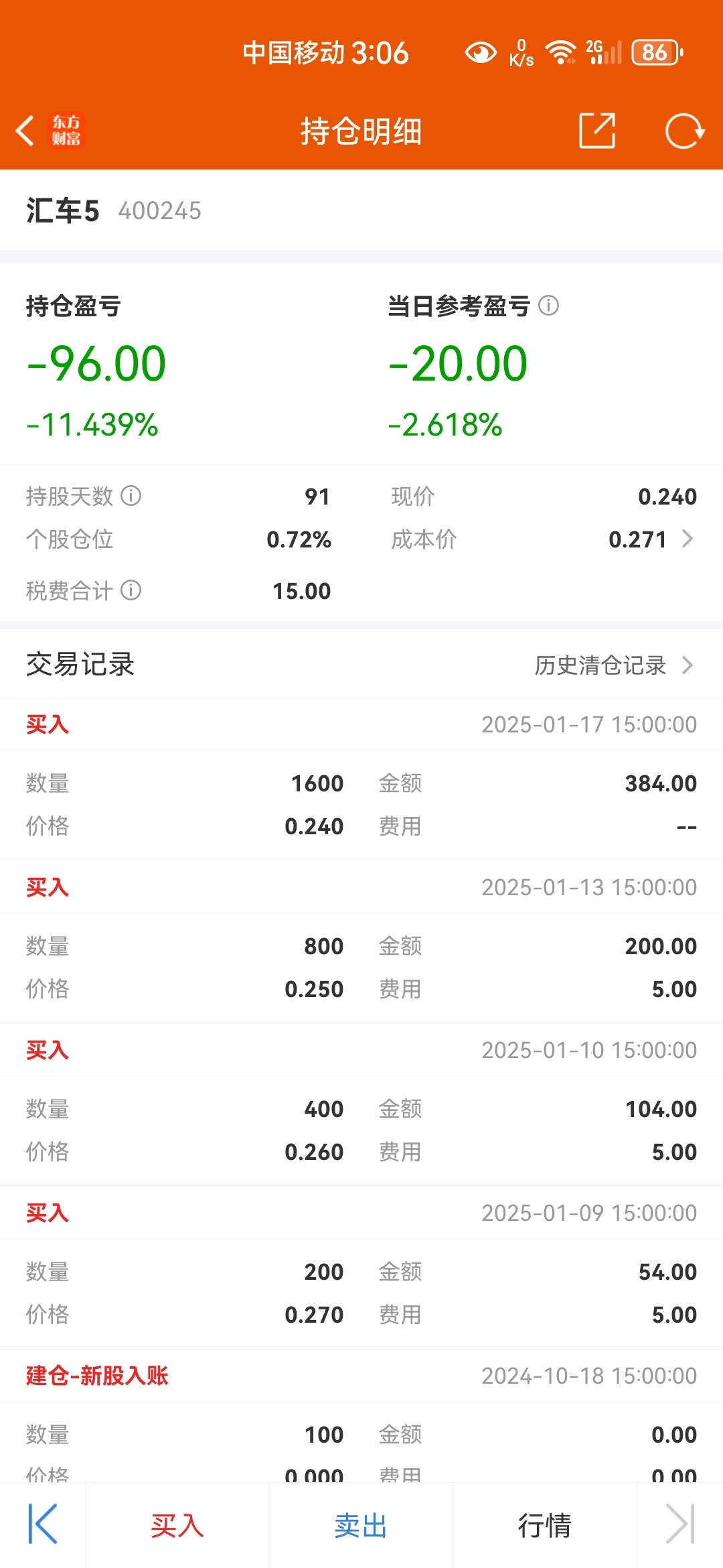 $汇车5(SZ400245)$ 哈哈,成本越来越低啦,不知道还能买几天反弹