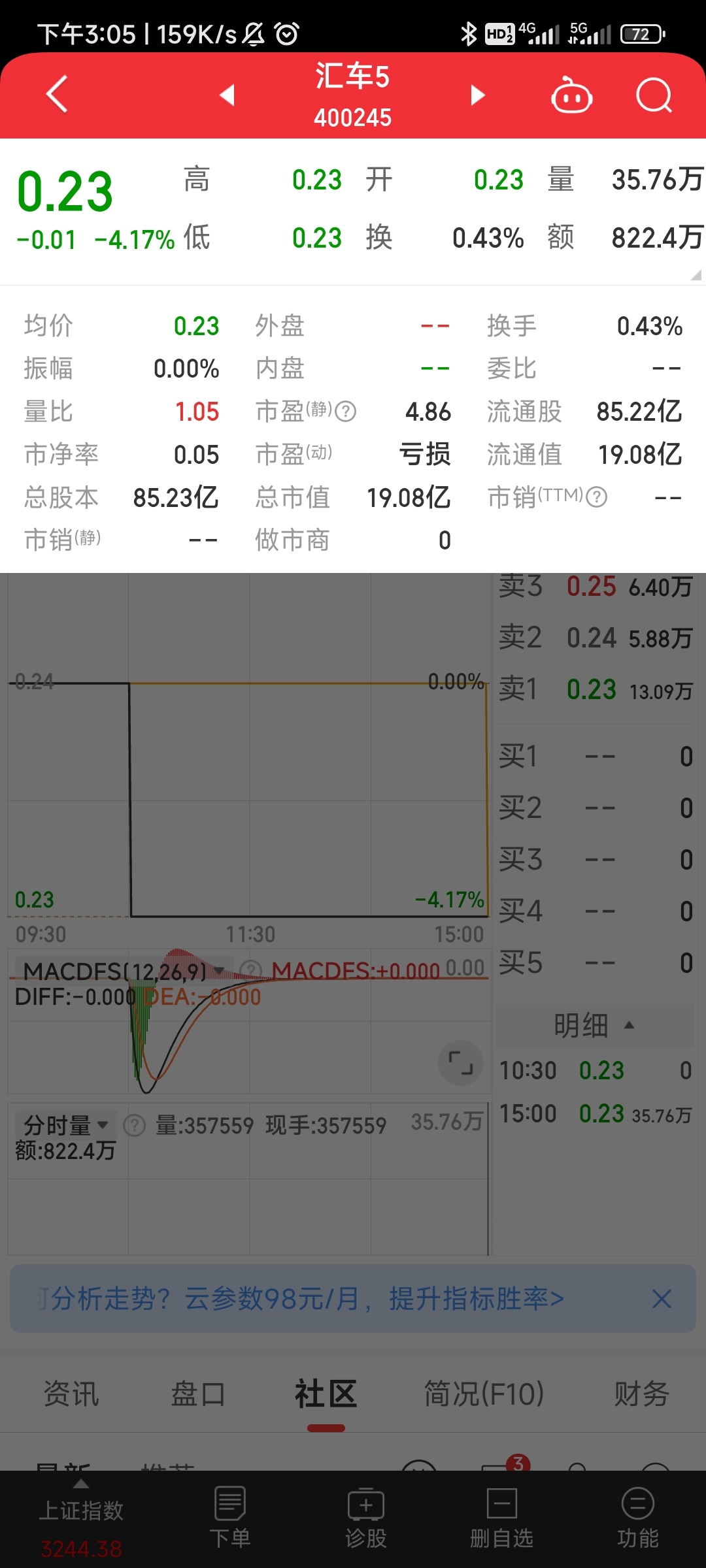 $汇车5(SZ400245)$ 现在是85.23亿股,看看明天是多少股,估计起码都多几千万股