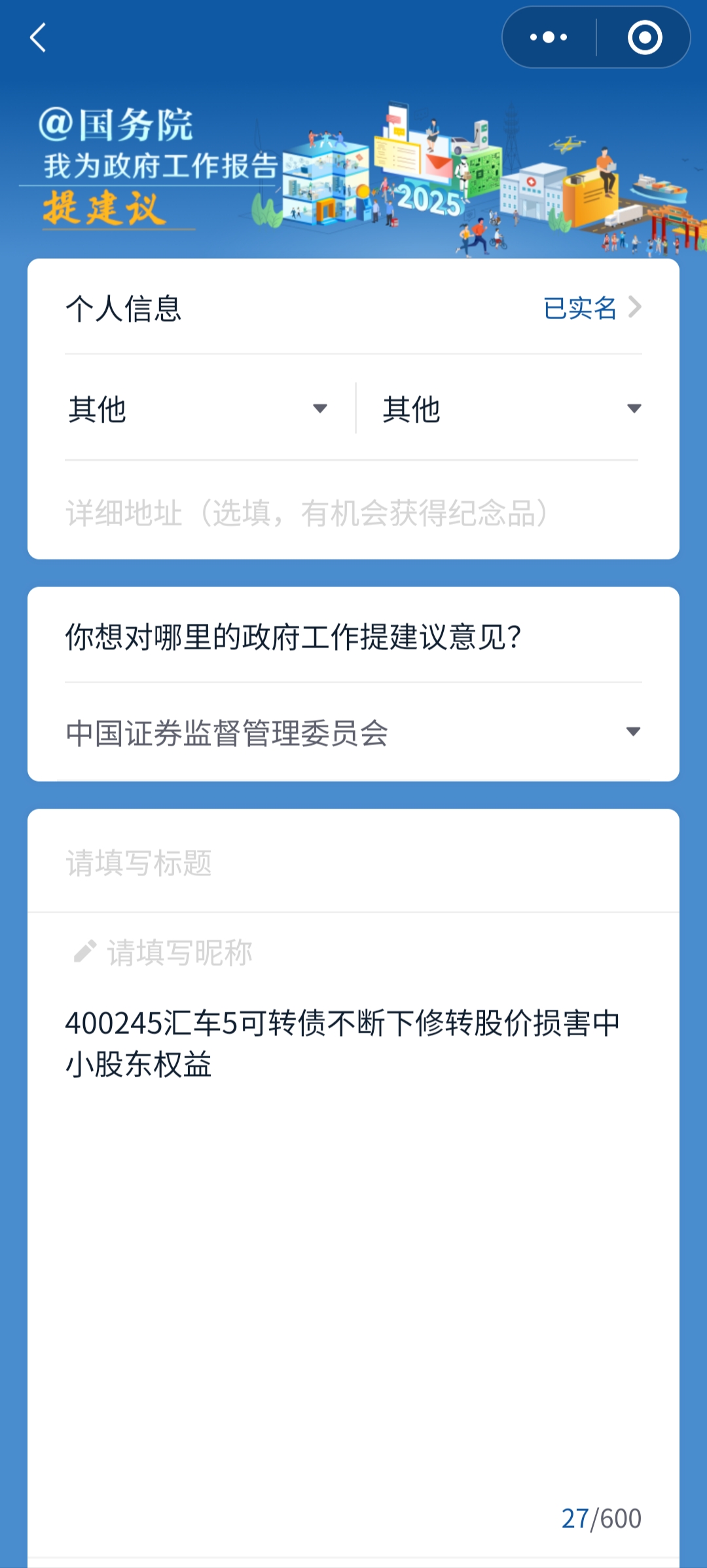 $汇车5(SZ400245)$ 下修损害中小股东权益投诉起来,没钱回售就请控股方申请停牌,然后变卖资产还债,不要以此为由操纵股价