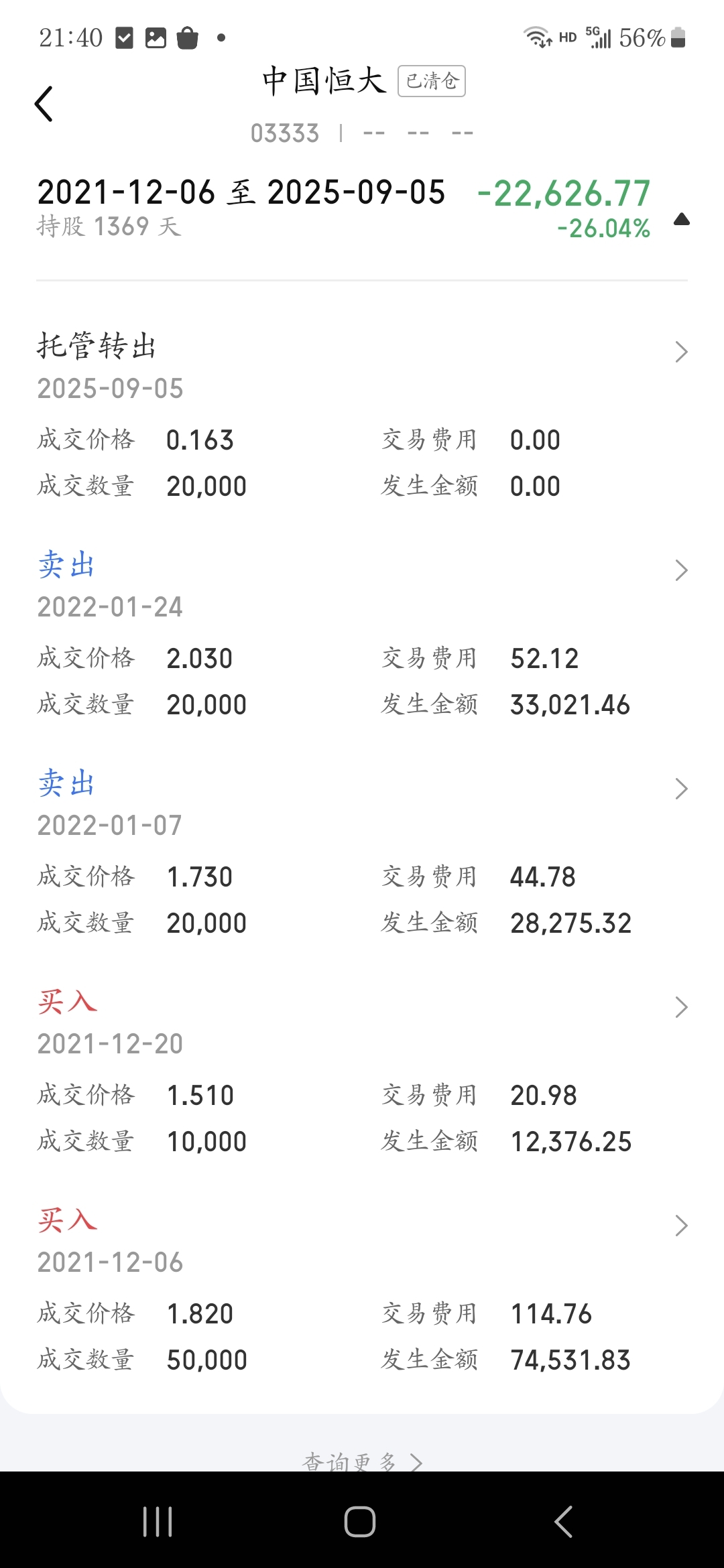 $R汇车1(SZ400245)$ 刚才打开账户,点了一下已清仓股票,本来是要看汇车退债的,却发现之前一直持有的中国恒小被系统自己清仓了,被清仓而浑然不觉,我想原因肯定是自己的账户资产太庞大了