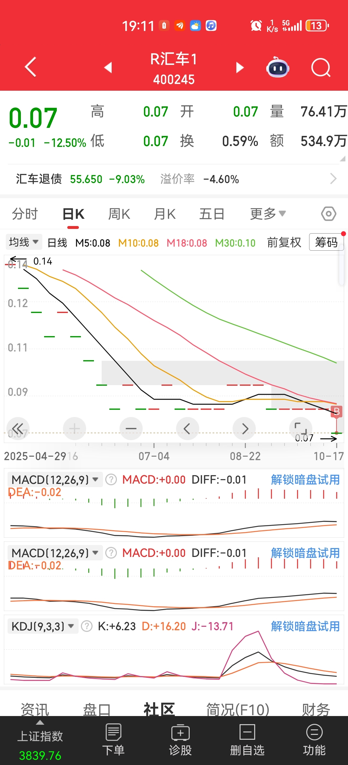 $R汇车1(SZ400245)$ 我来接盘了。后面应该会摸0.06的。先建点仓。