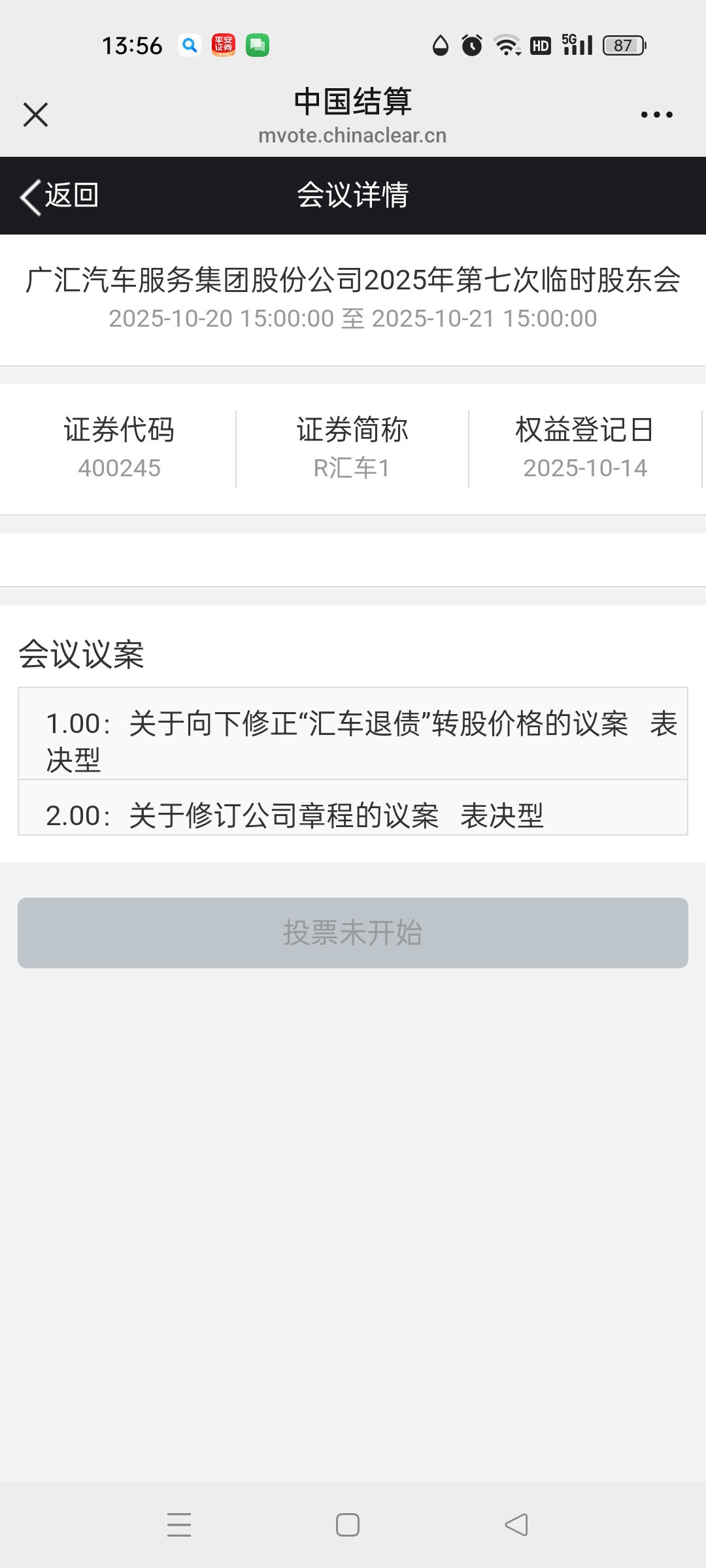 $R汇车1(SZ400245)$ 3点开始投票