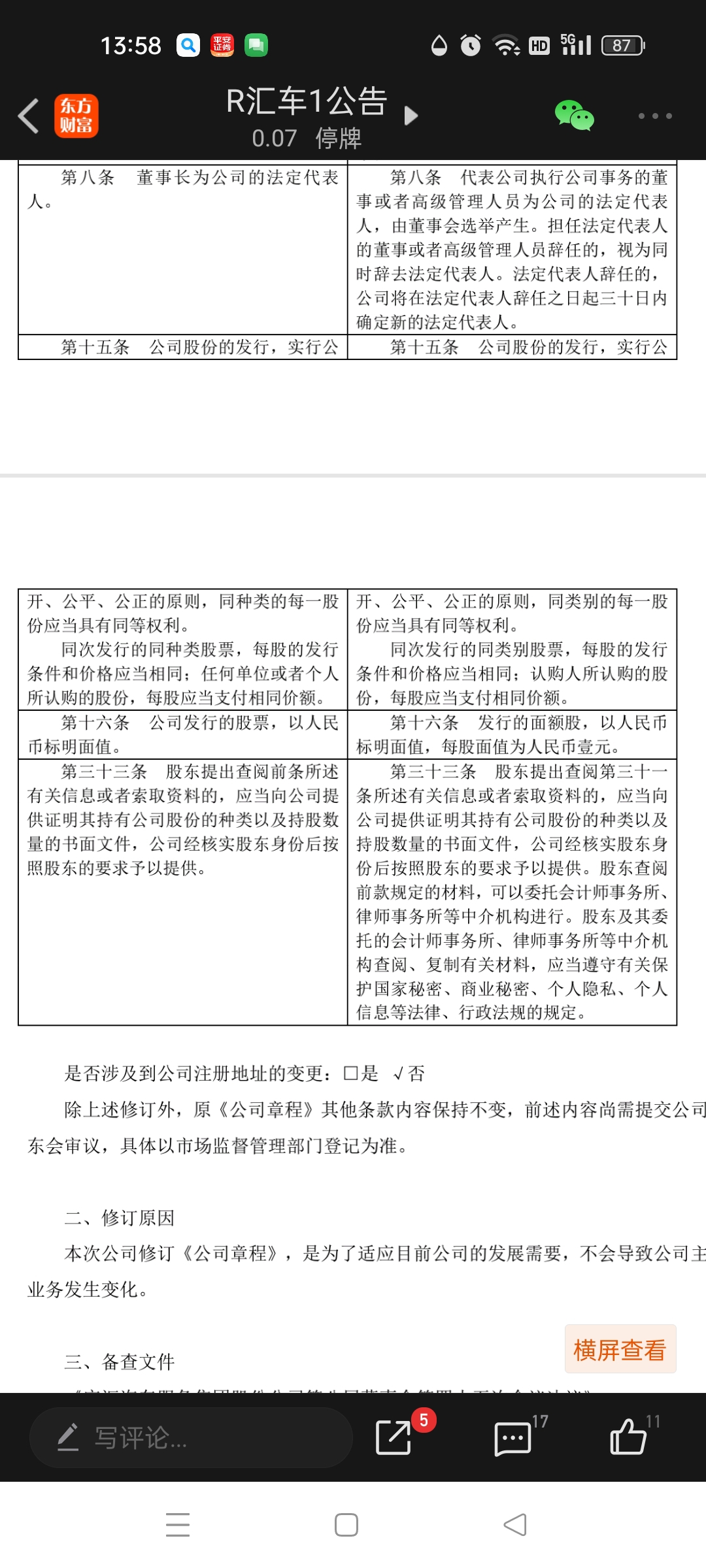 $R汇车1(SZ400245)$ 会议修订面值每股一元