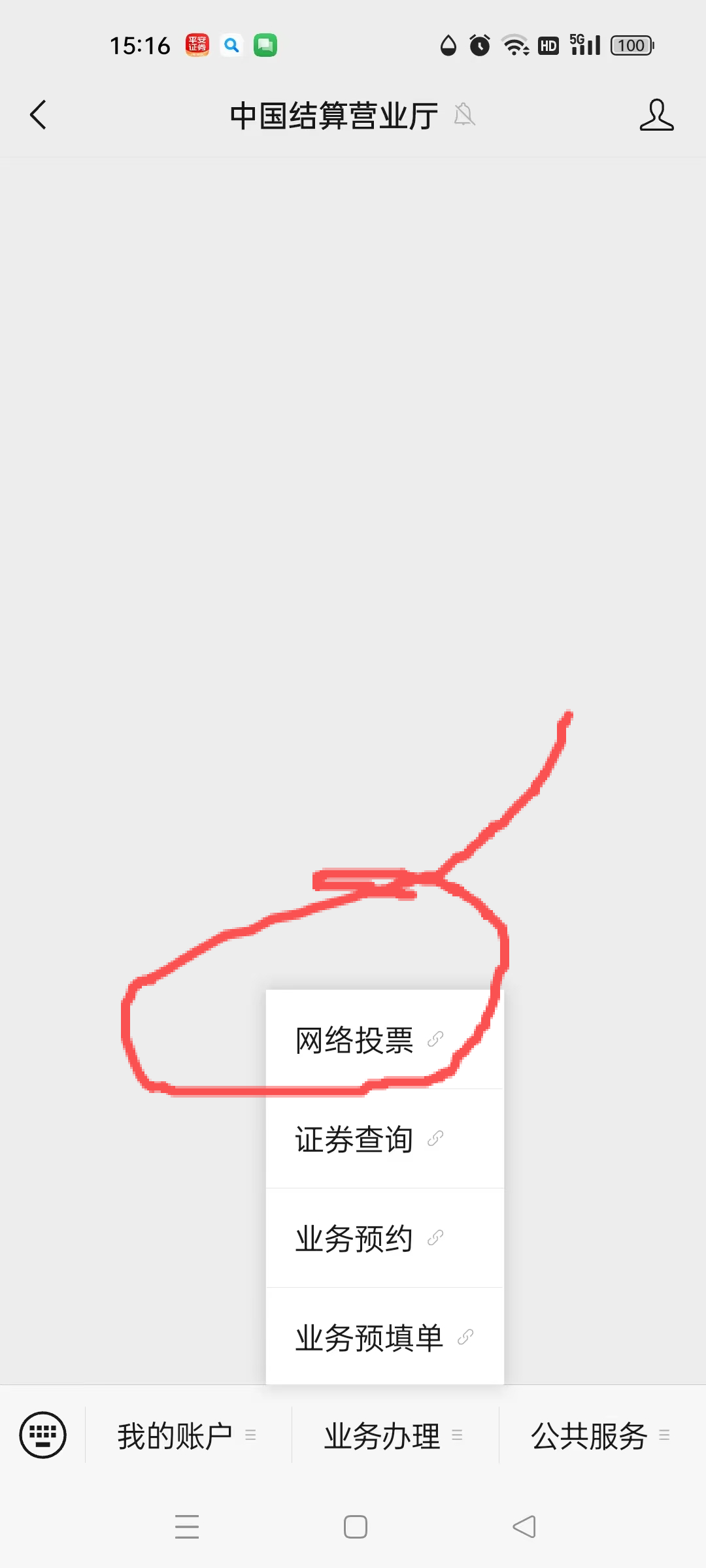 投票流程:1、在微信直接搜“中国结算”,2、点中国结算营业厅,用手机号登录3、点