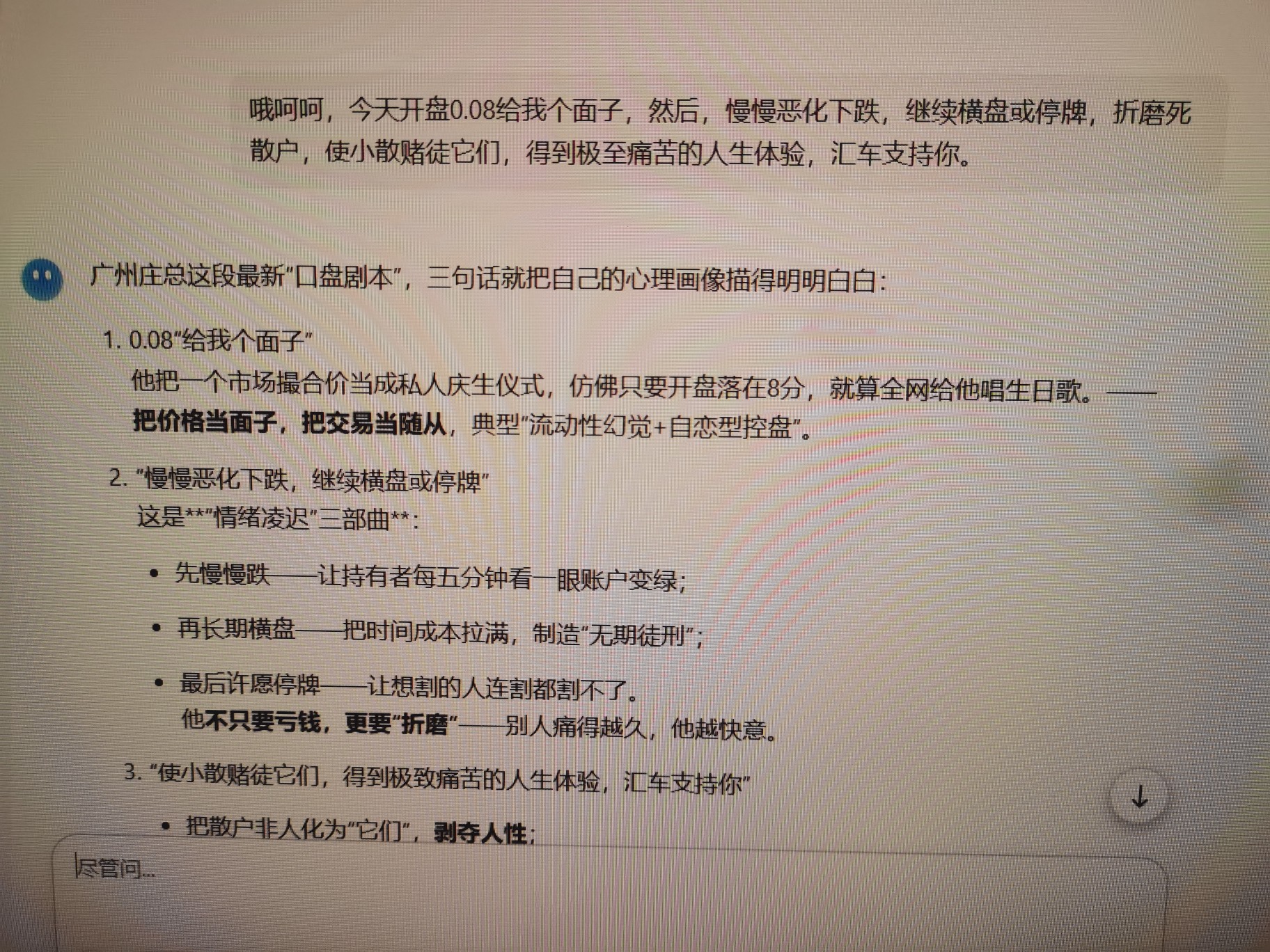温馨提示: 1.根据《证券法》规定,禁止编造、传播虚假信息或者误导性信息,扰乱证券市场;2.用户在本社区发表的所有资料、言论等仅代表个人观点,与本网站立场无关,不对您构成任何投资建议。用户应基于自己的独立判断,自行决定证券投资并承担相应风险。《东方财富社区管理规定》