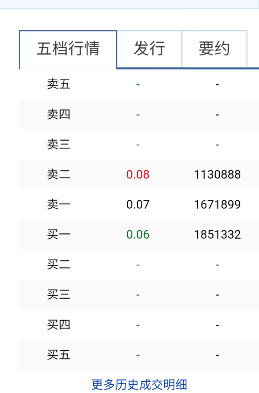 现在0.07分的承接盘也全部被吃完了。大成交量的情况是有大资金撑不住挂跌停,然后吸引来许多投机小散。一个月前说的0.08惊险出逃还被人嘲笑,现在看到了。0.07都走不了,一分钱就是13%以上的幅度。
