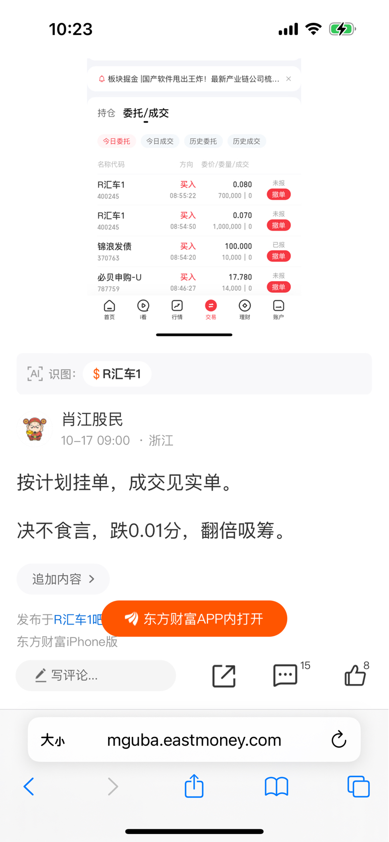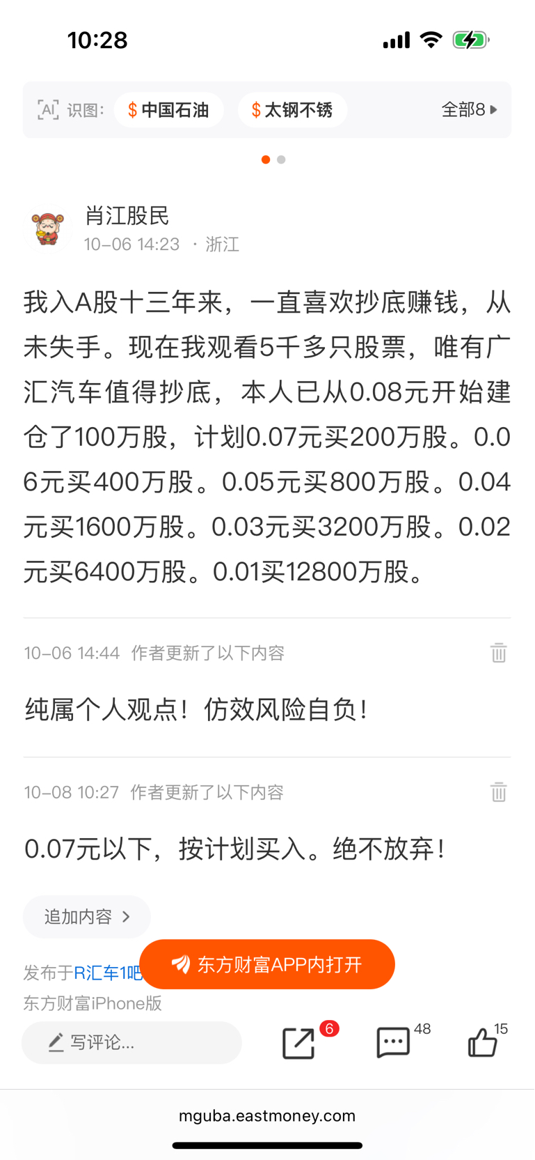 温馨提示: 1.根据《证券法》规定,禁止编造、传播虚假信息或者误导性信息,扰乱证券市场;2.用户在本社区发表的所有资料、言论等仅代表个人观点,与本网站立场无关,不对您构成任何投资建议。用户应基于自己的独立判断,自行决定证券投资并承担相应风险。《东方财富社区管理规定》