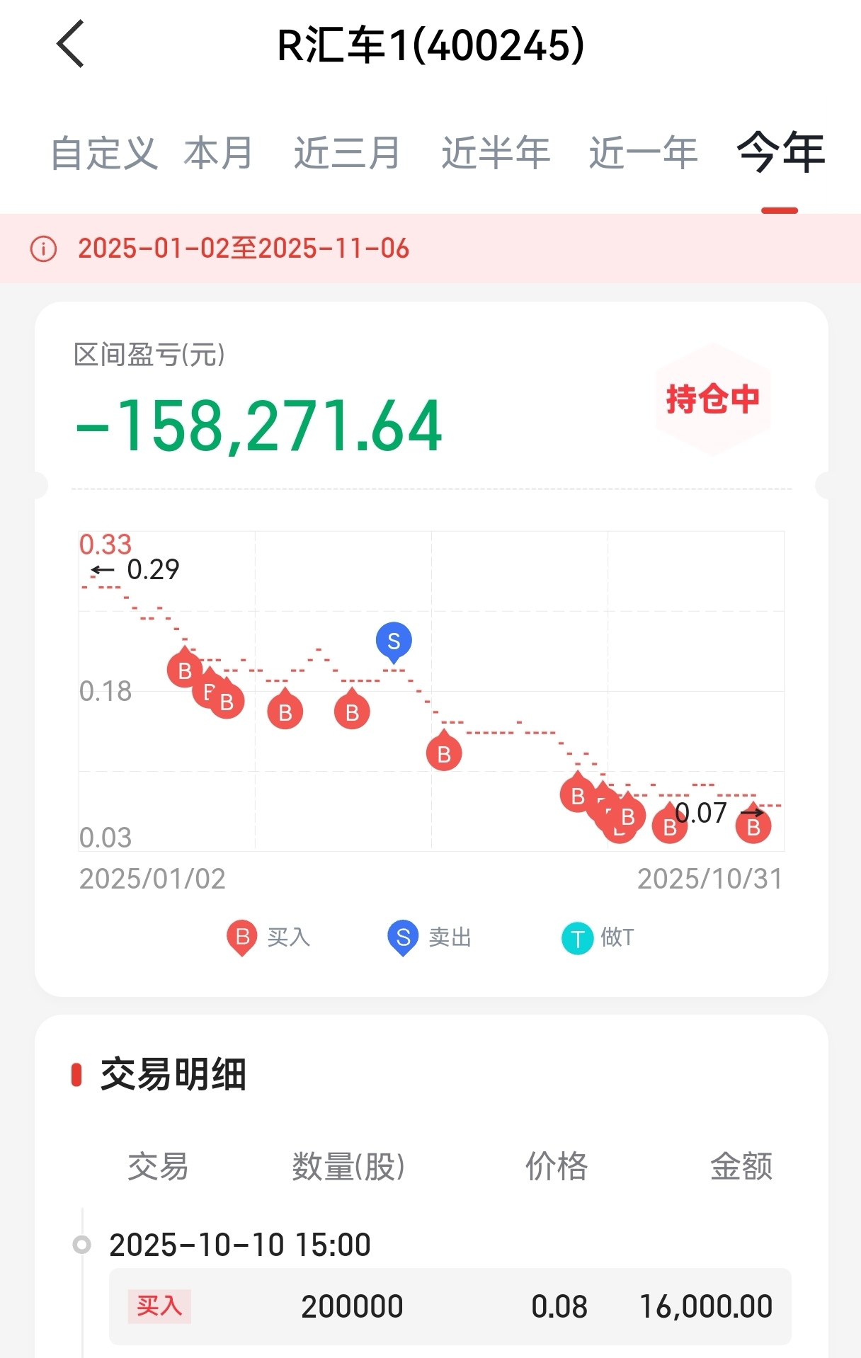 $R汇车1(SZ400245)$ 一路跌一路补,亏了一辆车,到了007都不敢补了,说明到头了