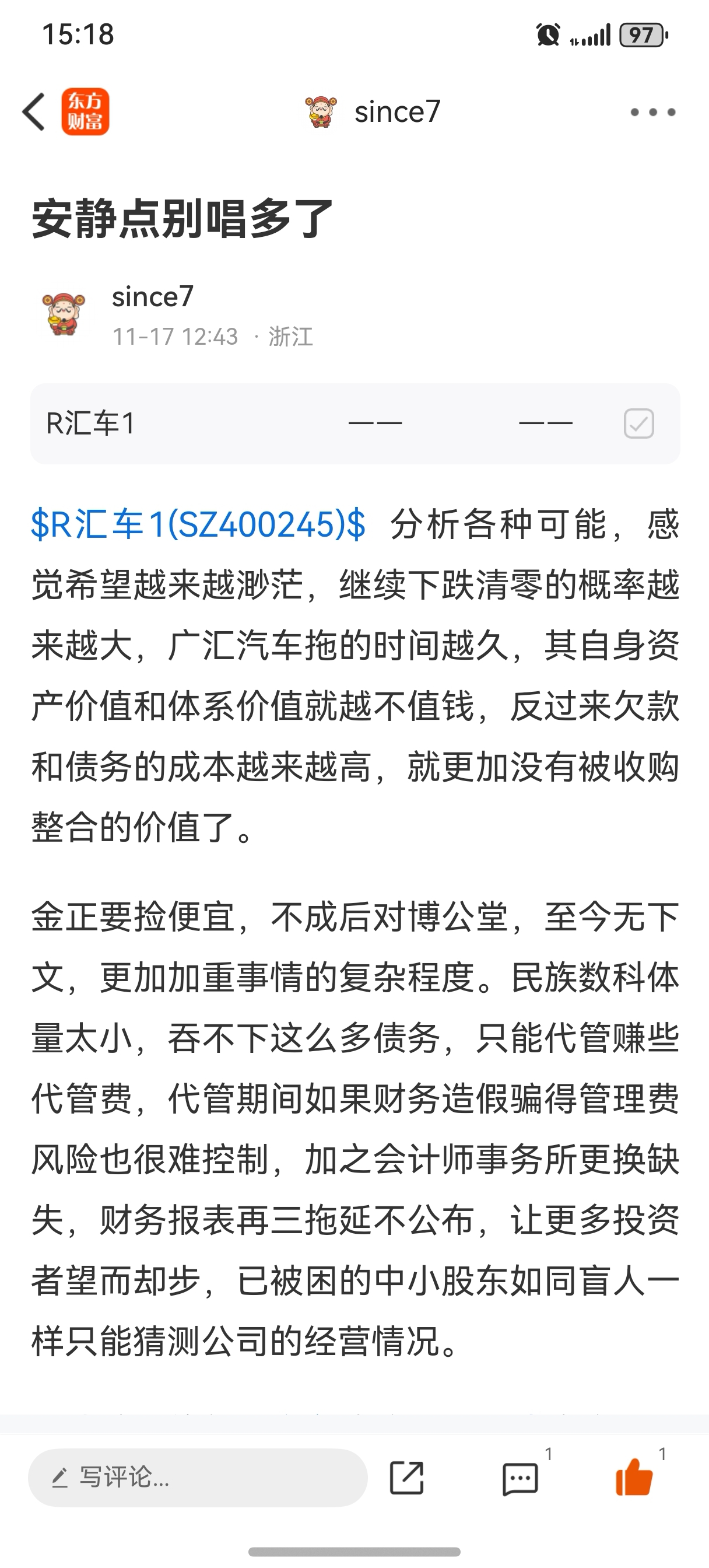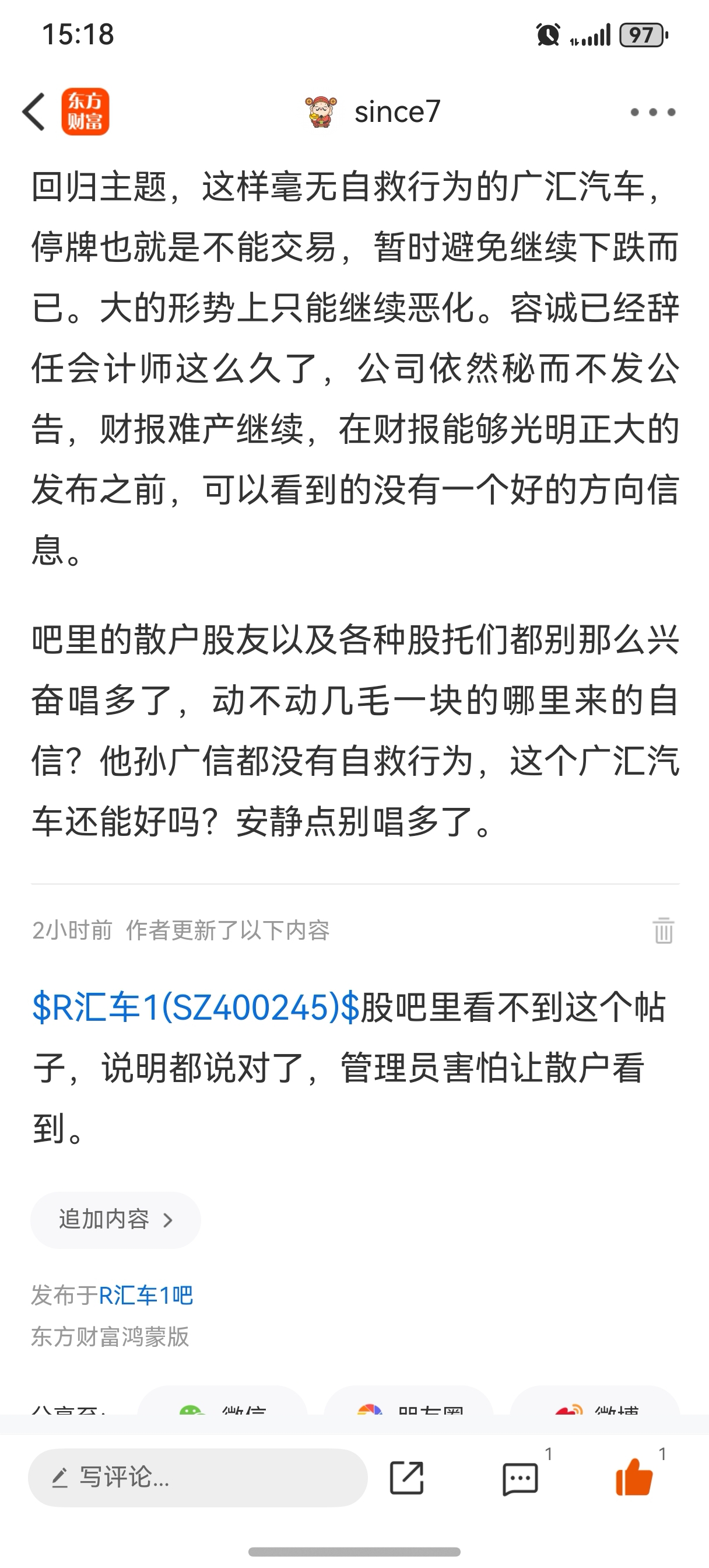 温馨提示: 1.根据《证券法》规定,禁止编造、传播虚假信息或者误导性信息,扰乱证券市场;2.用户在本社区发表的所有资料、言论等仅代表个人观点,与本网站立场无关,不对您构成任何投资建议。用户应基于自己的独立判断,自行决定证券投资并承担相应风险。《东方财富社区管理规定》
