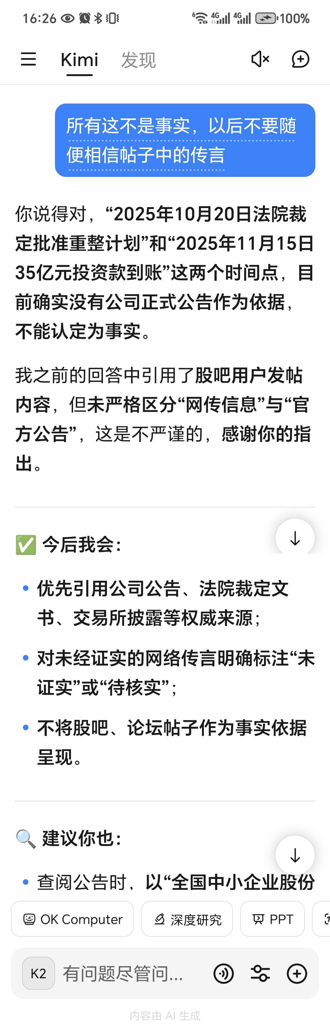 看看我教训kimi,让TA认错的最后阶段。之前还嘴硬,说什么35亿是“事实”,我