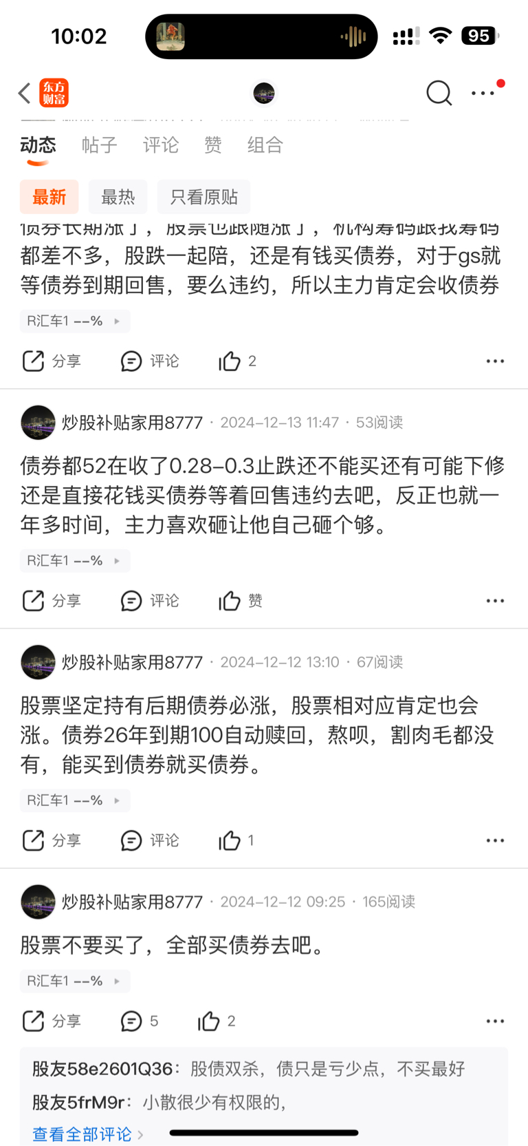 $R汇车1(SZ400245)$ 去年年底就在喊不要买股买债券