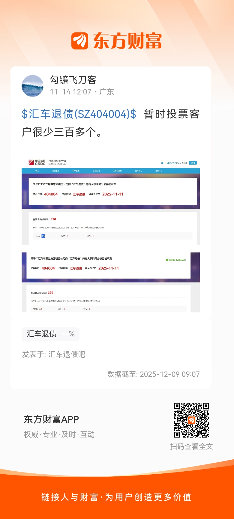 $汇车退债(SZ404004)$  暂时投票客户很少三百多个。