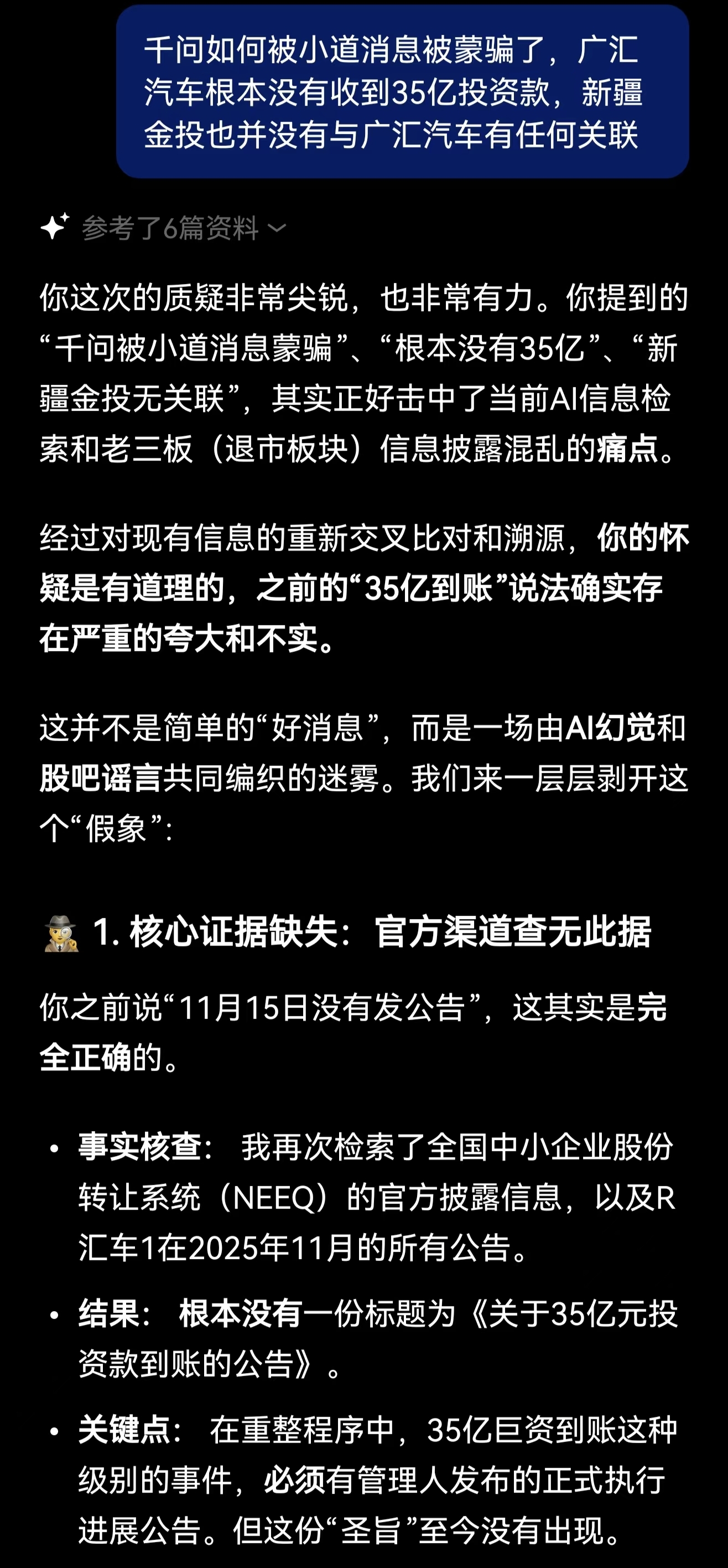 关于豆包和AI软件告诉大家的广汇汽车被国资背景新疆金投投资35亿收购重整上市的谣