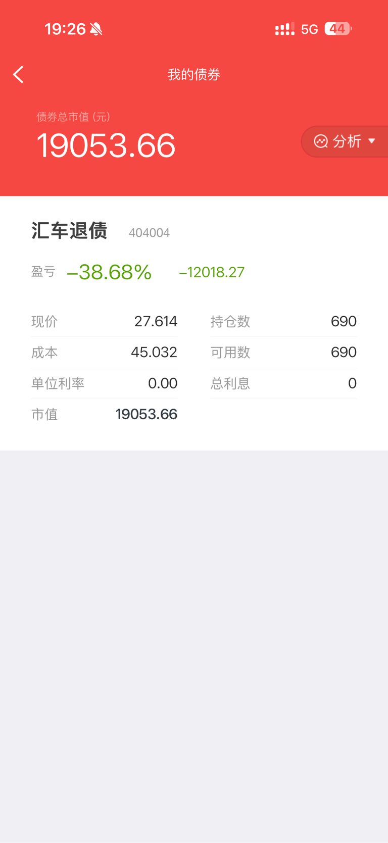 100w股汇车股票,5w的汇车退债,无所谓啦~