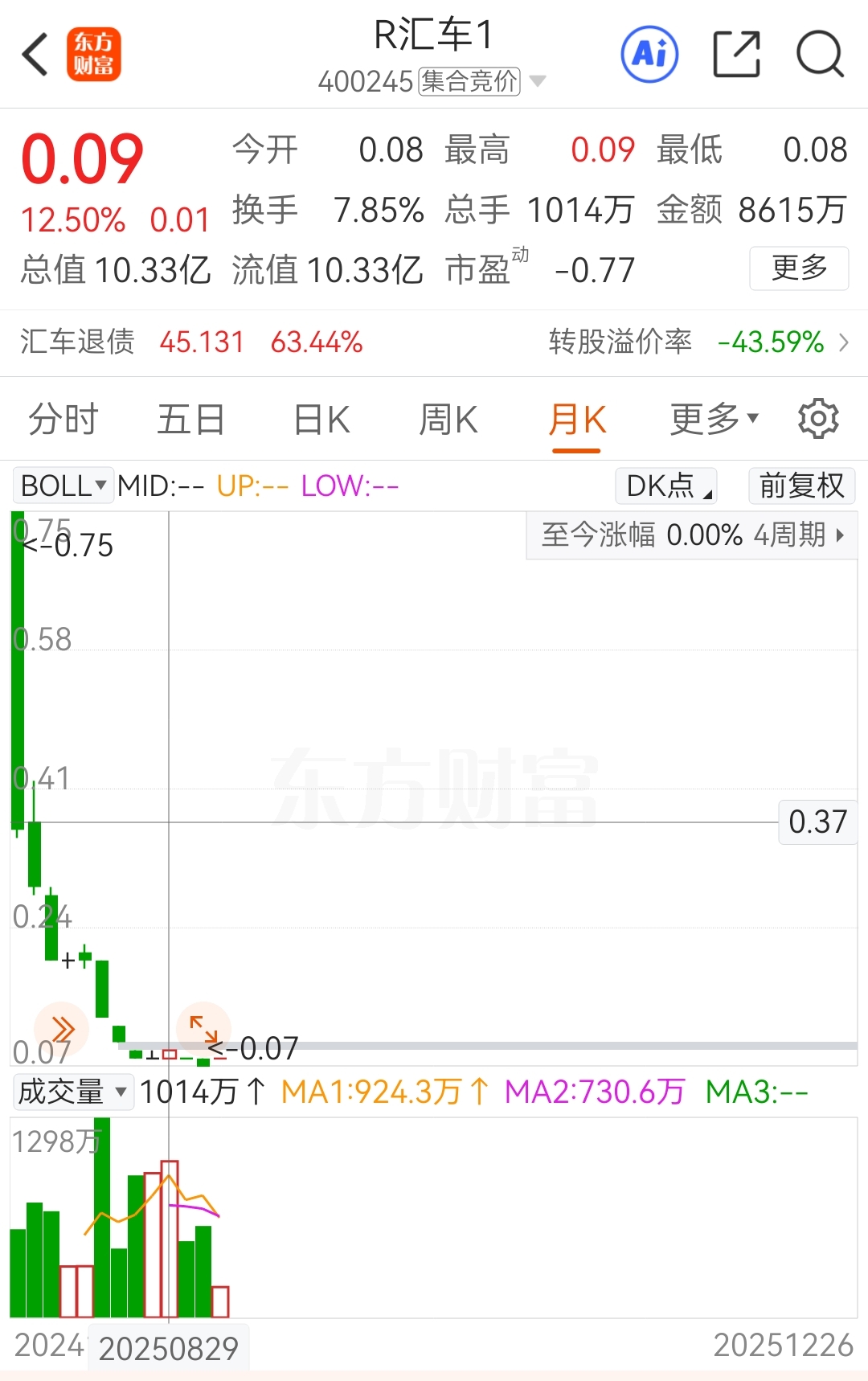 $R汇车1(SZ400245)$ 交易量不是一个级别。