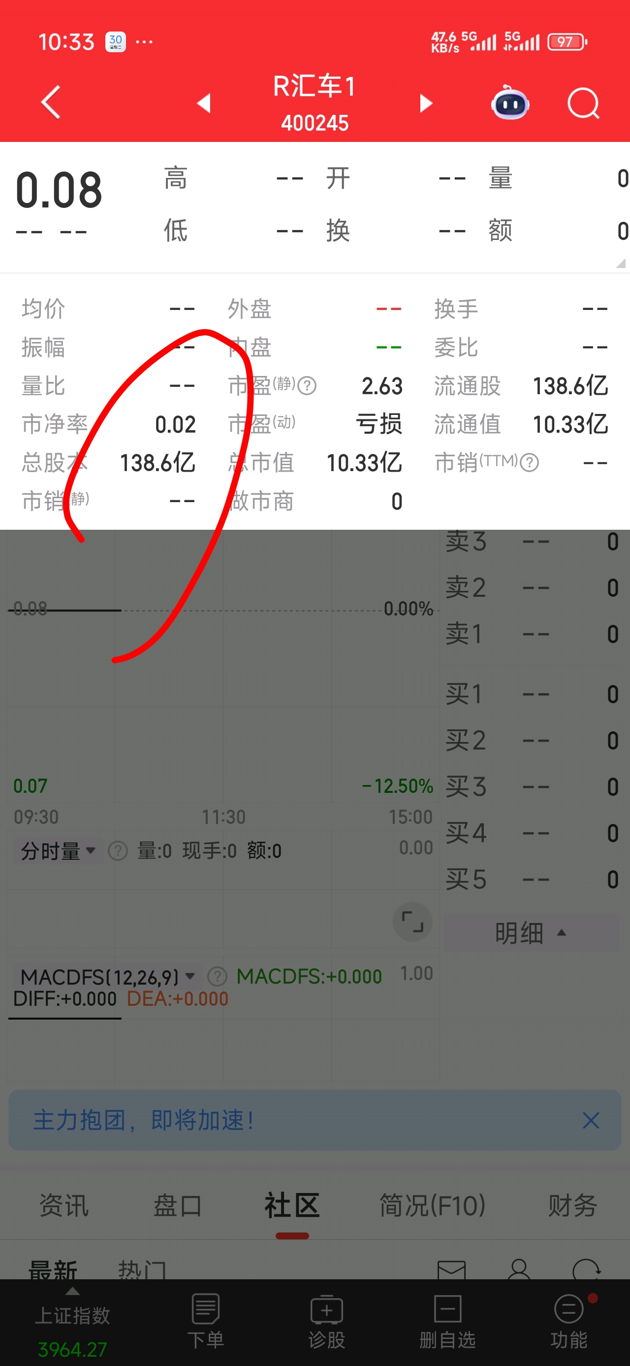 $R汇车1(SZ400245)$ 138.6-上个礼拜五的134.5=4.1亿股
