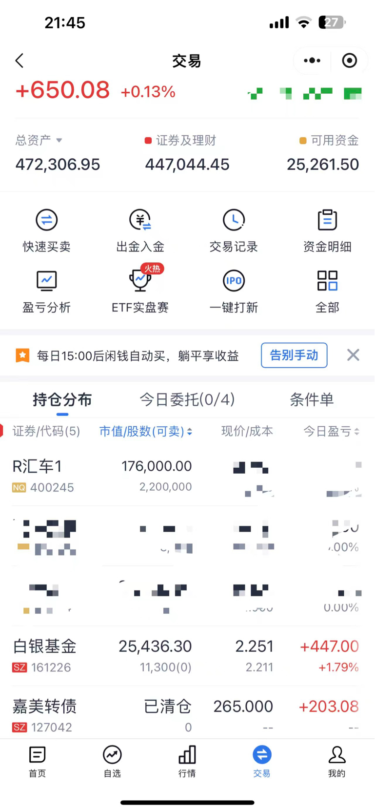 两个账户一个普通账户一个融资账户,准备把其他股票清仓专门干汇车,争取加仓到八九百