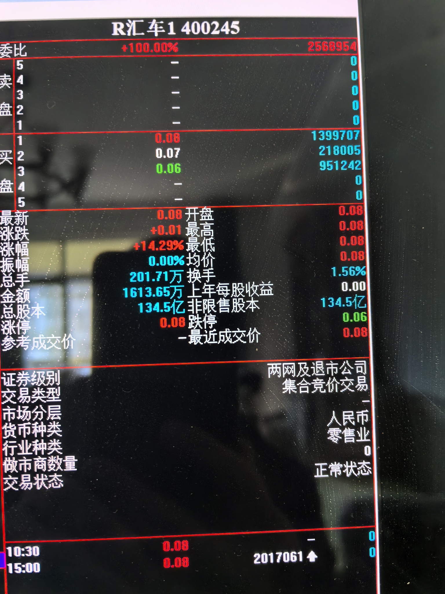 $R汇车1(SZ400245)$ 上个交易日1.4亿股没抢到。
