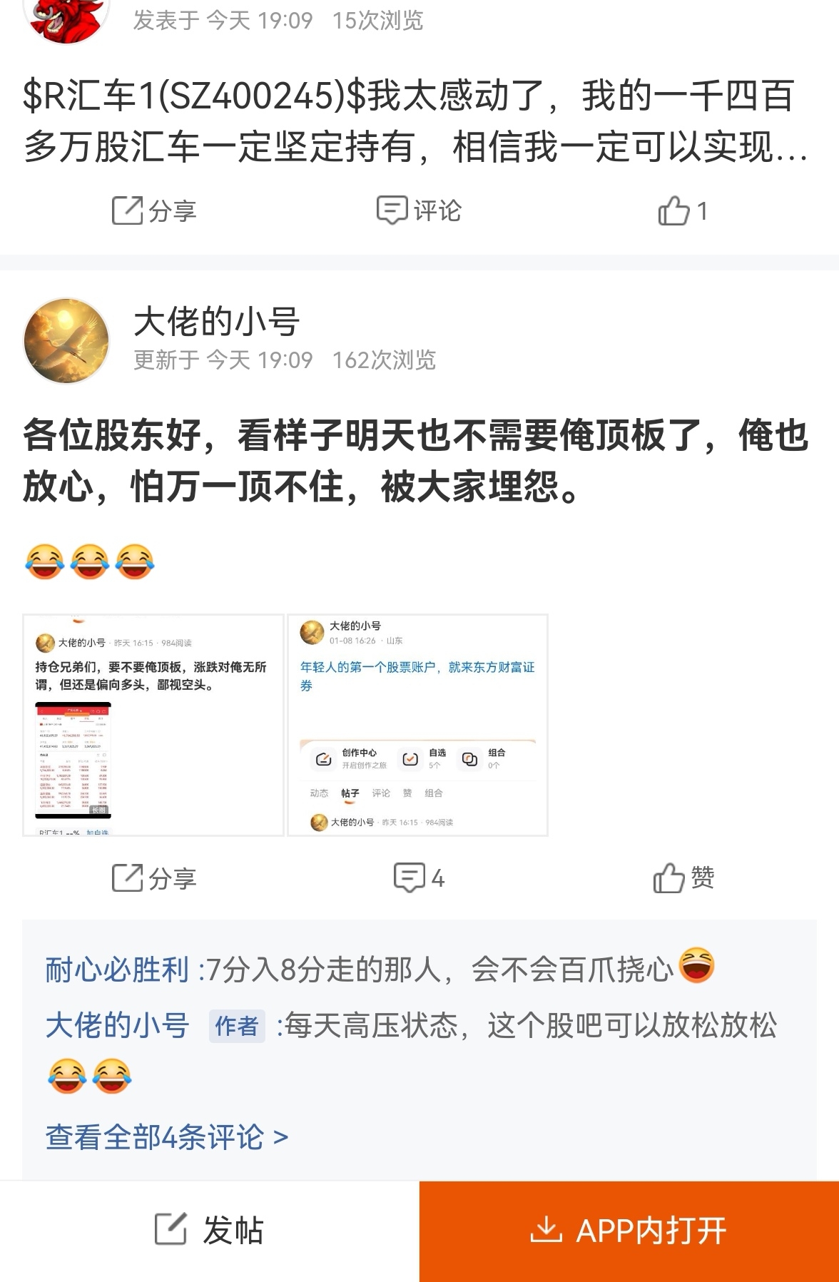 温馨提示: 1.根据《证券法》规定,禁止编造、传播虚假信息或者误导性信息,扰乱证券市场;2.用户在本社区发表的所有资料、言论等仅代表个人观点,与本网站立场无关,不对您构成任何投资建议。用户应基于自己的独立判断,自行决定证券投资并承担相应风险。《东方财富社区管理规定》