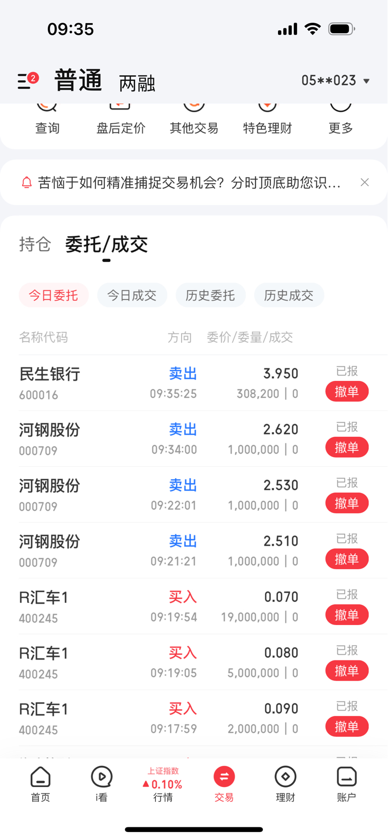 汇车:0.09元200万股。0.08元500万股。0.07元1900万股。已经挂单等待买入。计划把河钢股份300万股,民生银行的全部逢高卖出,聚集汇车。