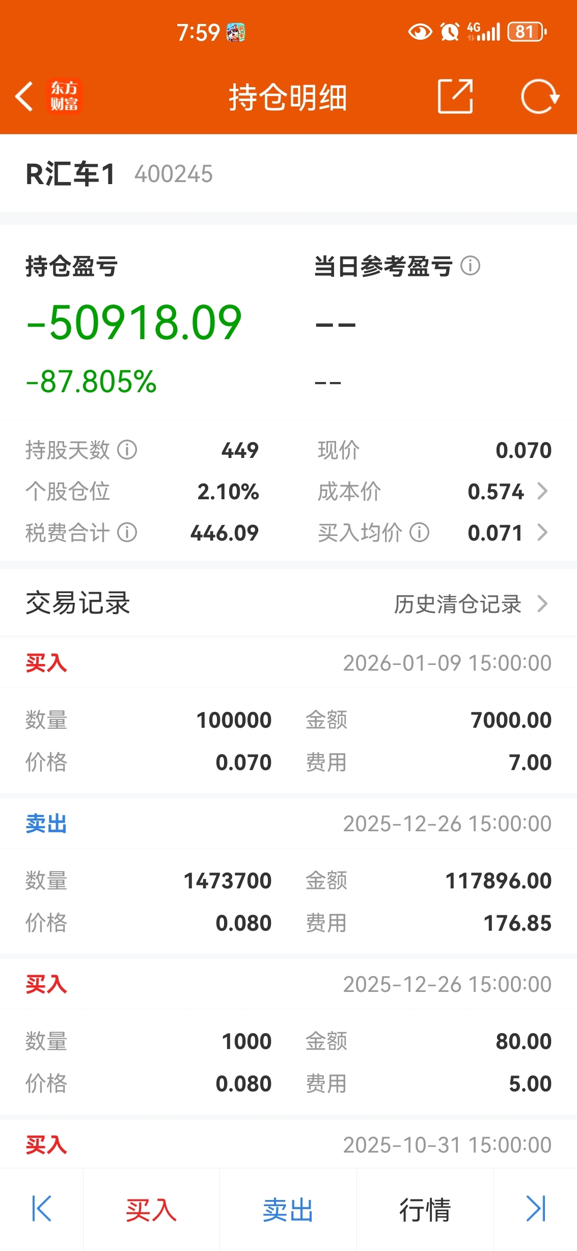 $R汇车1(SZ400245)$ 得亏走了在这里躲牛市