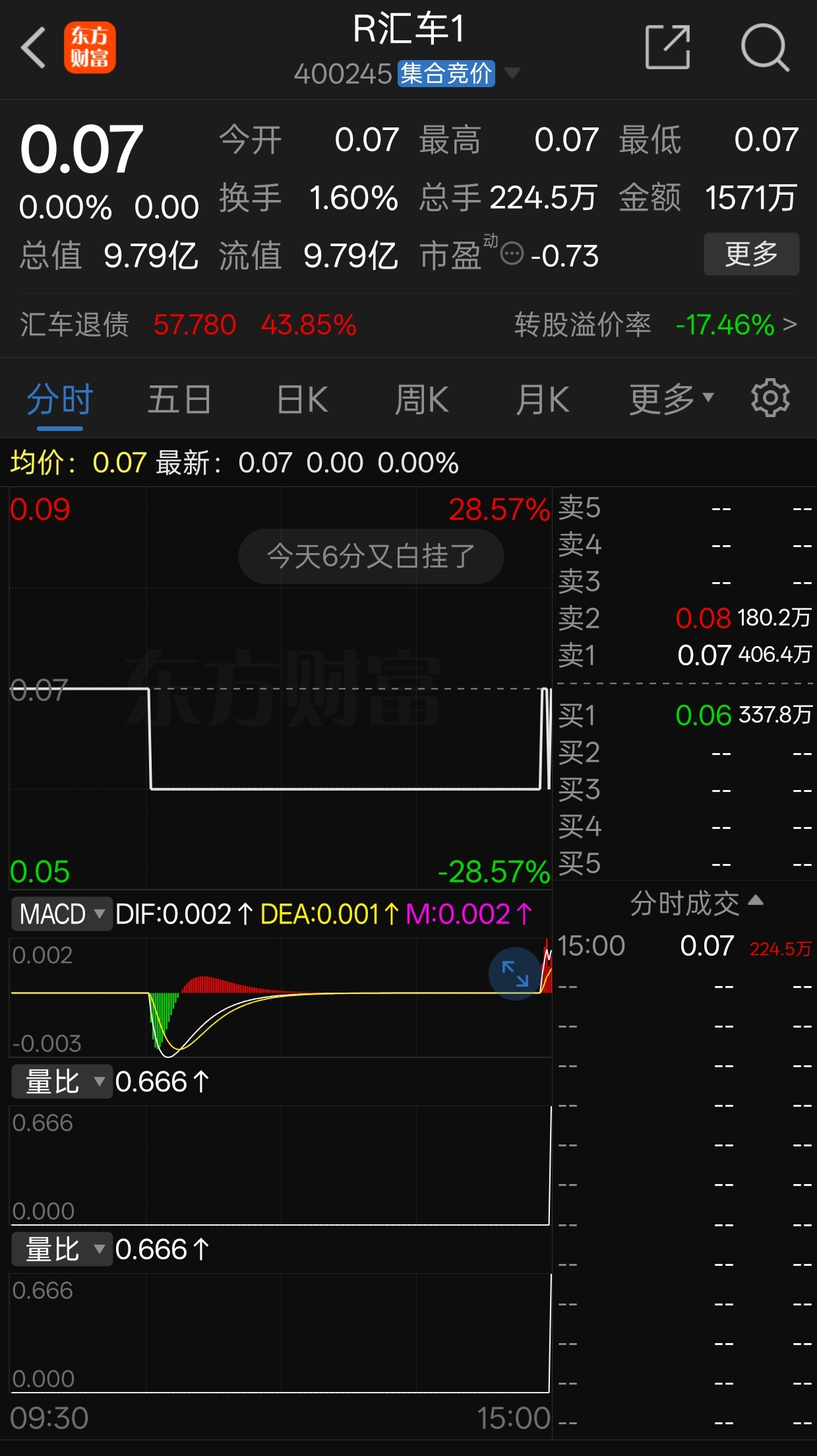 $R汇车1(SZ400245)$ 有四亿股卖盘。