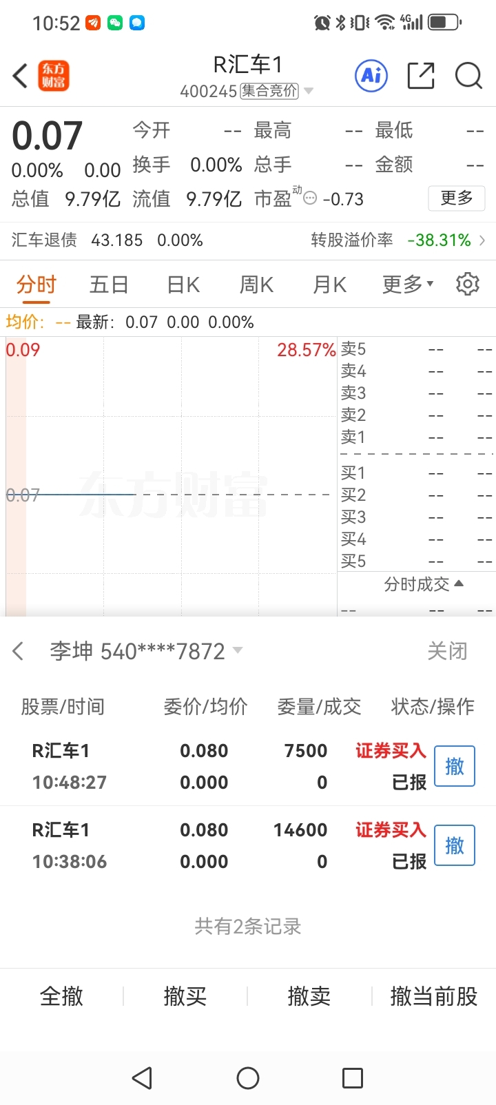 $R汇车1(SZ400245)$ 大家别抢让我买点。没钱了生活费都加里面了