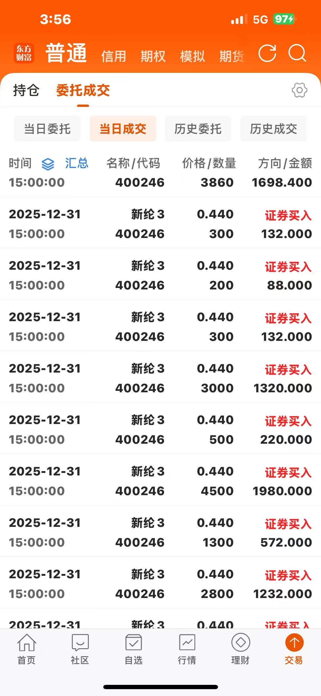 $新纶3(SZ400246)$ 我对纶纶有强烈的信念,从年初的投入建仓,低吸高抛,震仓洗筹,基本控盘,进入主升……我的资金是1个千W,分几个户,目前完成建仓五成筹码,还有一半仓位资金操作,我现在每个交易日的开盘价只挂1000手买单,我担心顶多了就会升的太快,吃货成本偏高,我目前的货仓均价都已经是三毛八,你还想怎么样?有图有真相!编幅所限。