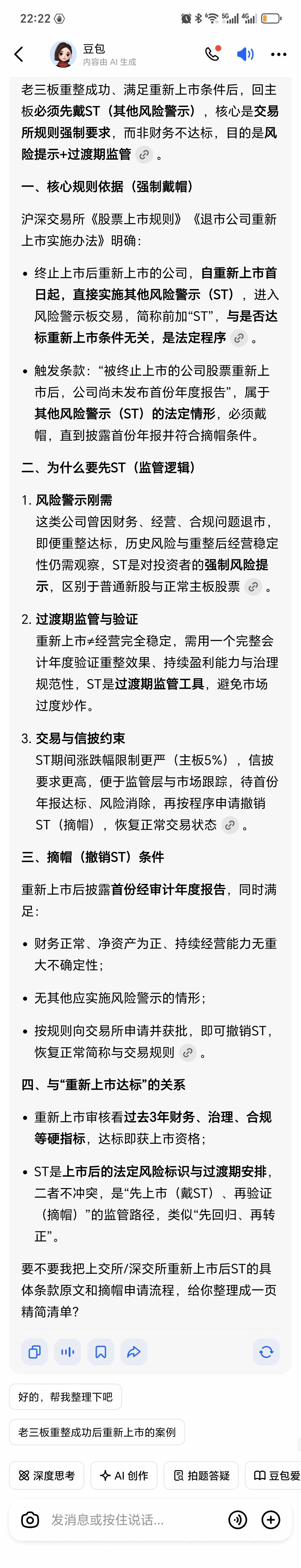 $新纶3(SZ400246)$ 之前我都发帖子说了,大家要有个预期,股价不可能一直涨,大股东能几毛钱购买,不可能在一两块钱上买,重整价没有定出来之前,庄家肯定会压盘。哪怕重整成功以后还有三个年季度的盈利指标,各个指标达到才能申请,先去ST板块,之后才能去主板。