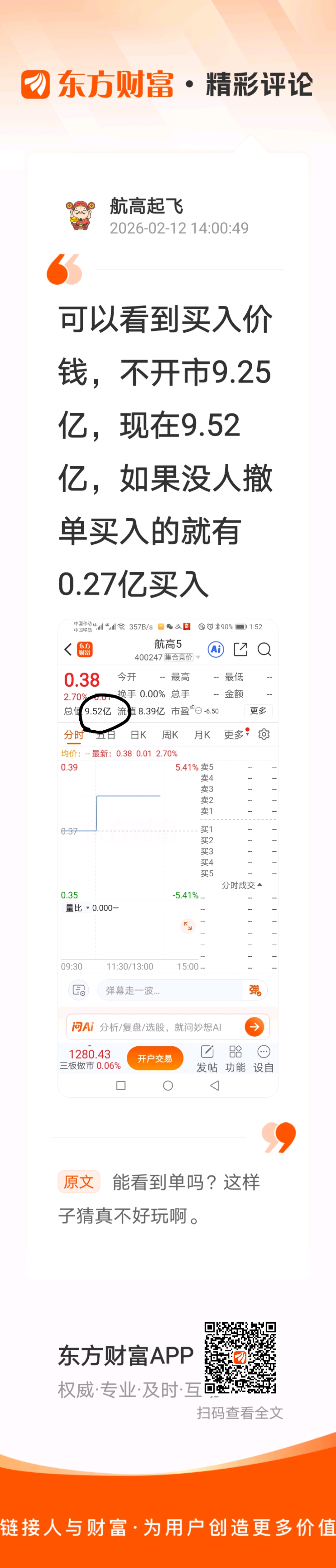 现在买入价//@航高起飞 :可以看到买入价钱,不开市9.25亿,现在9.52亿,如果没人撤单买入的就有0.27亿买入