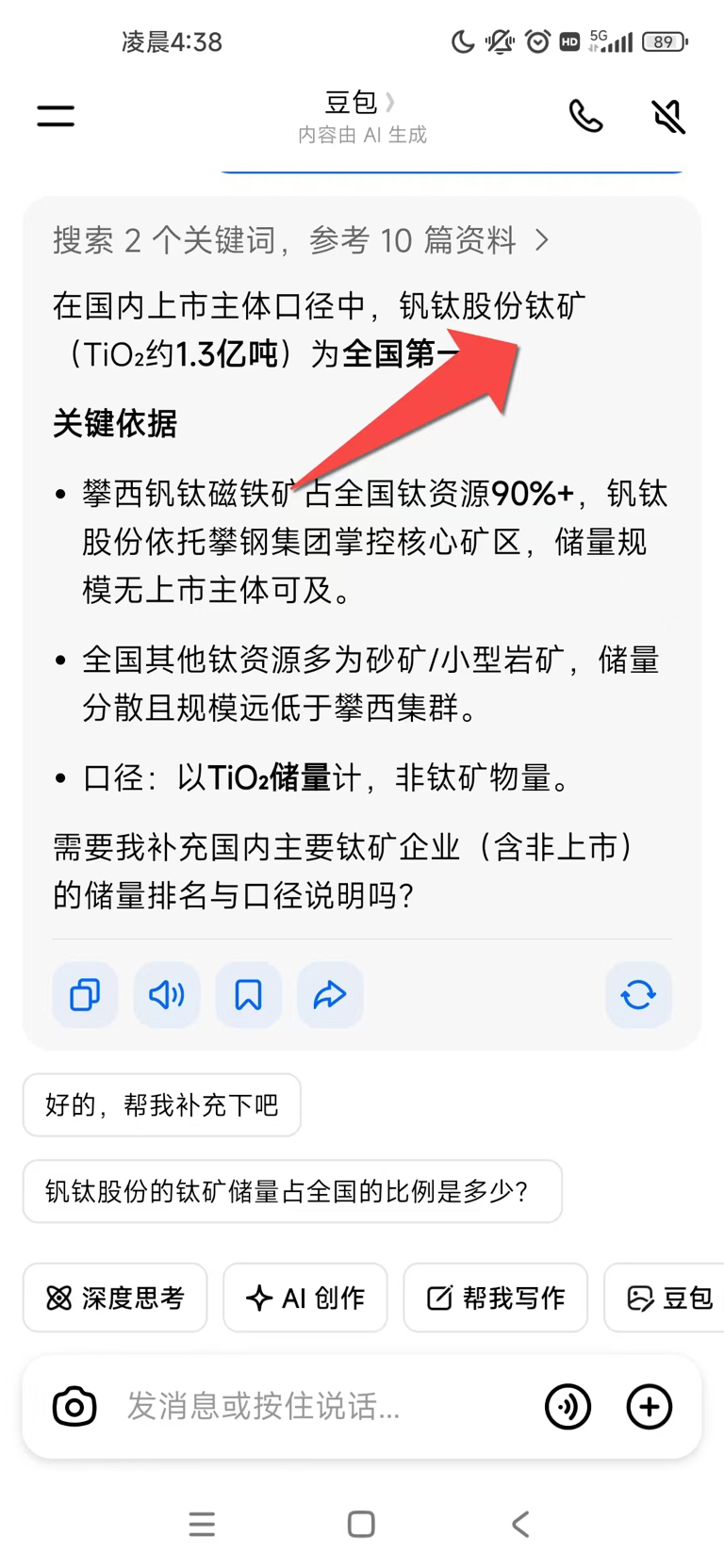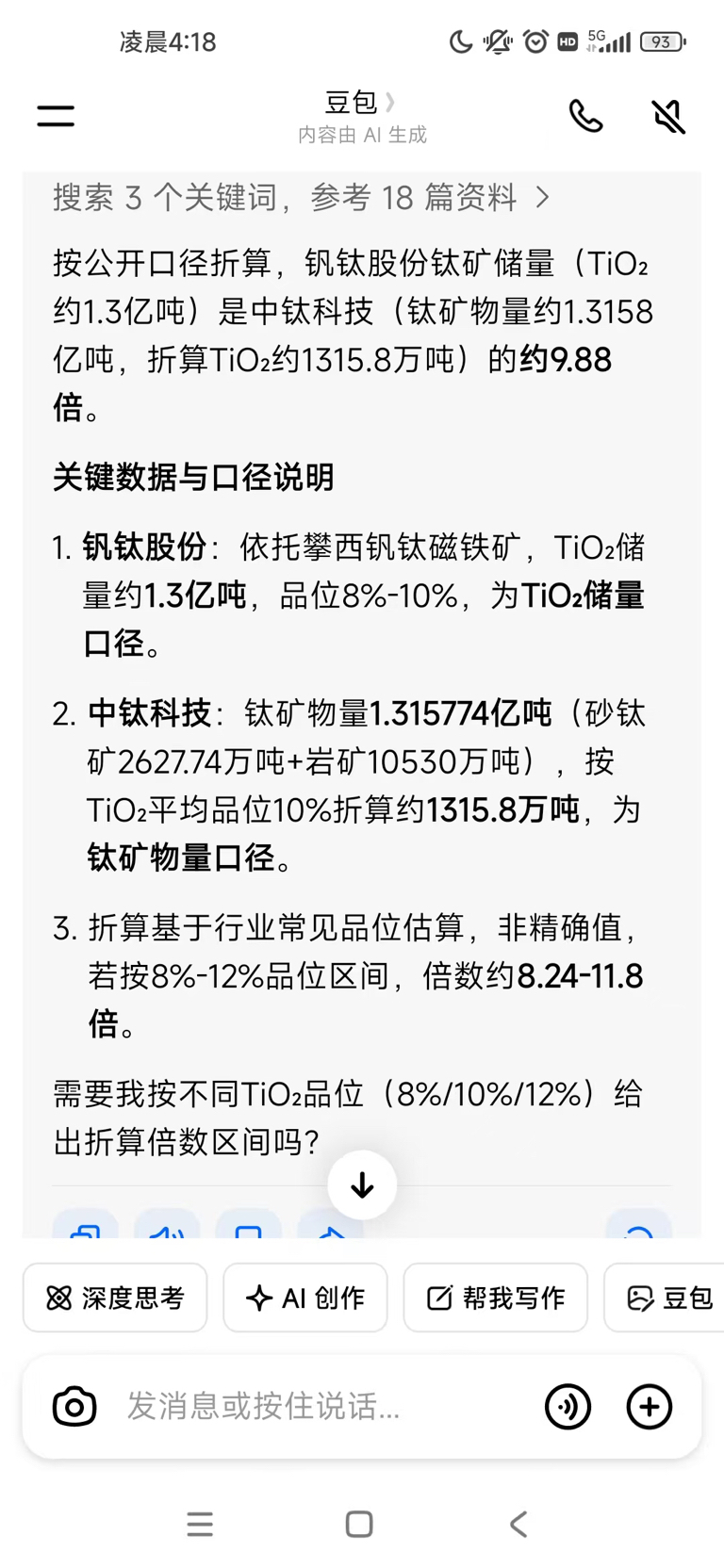 $鼎龙5(SZ400250)$ $贵天成3(SZ400238)$ $中程5(SZ400279)$ 钛矿物储量达到钒钛股份的十分之一?这个数字不小了,钒钛股份的钛矿储量好像是全国第一位。