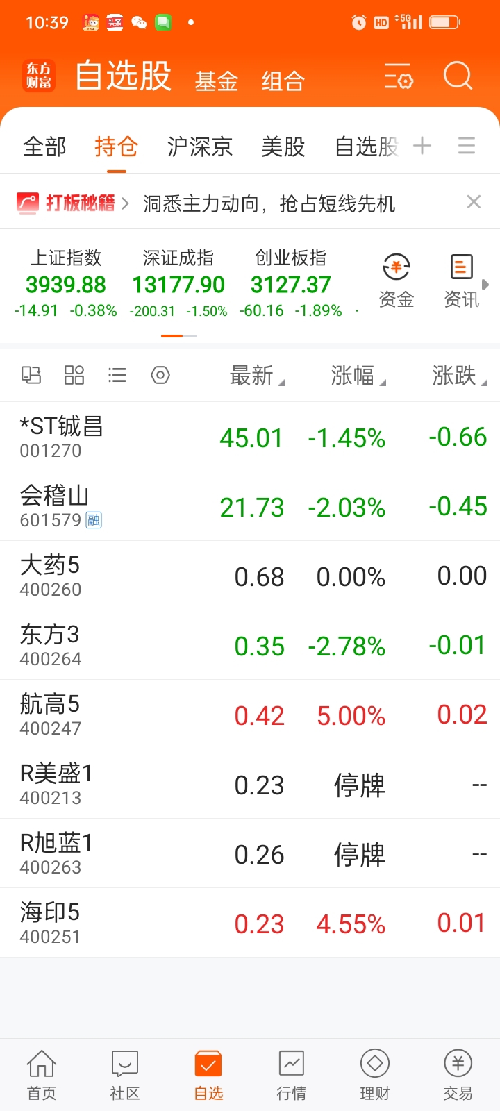 今天赚的爽,第一重仓股海印,第三重仓股航高都涨停,就可惜第二重仓股美盛没开盘,要