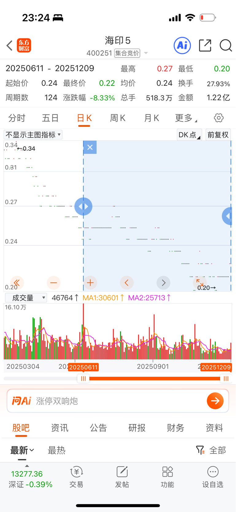 $海印5(SZ400251)$ 庄稼成本差不多在0.24