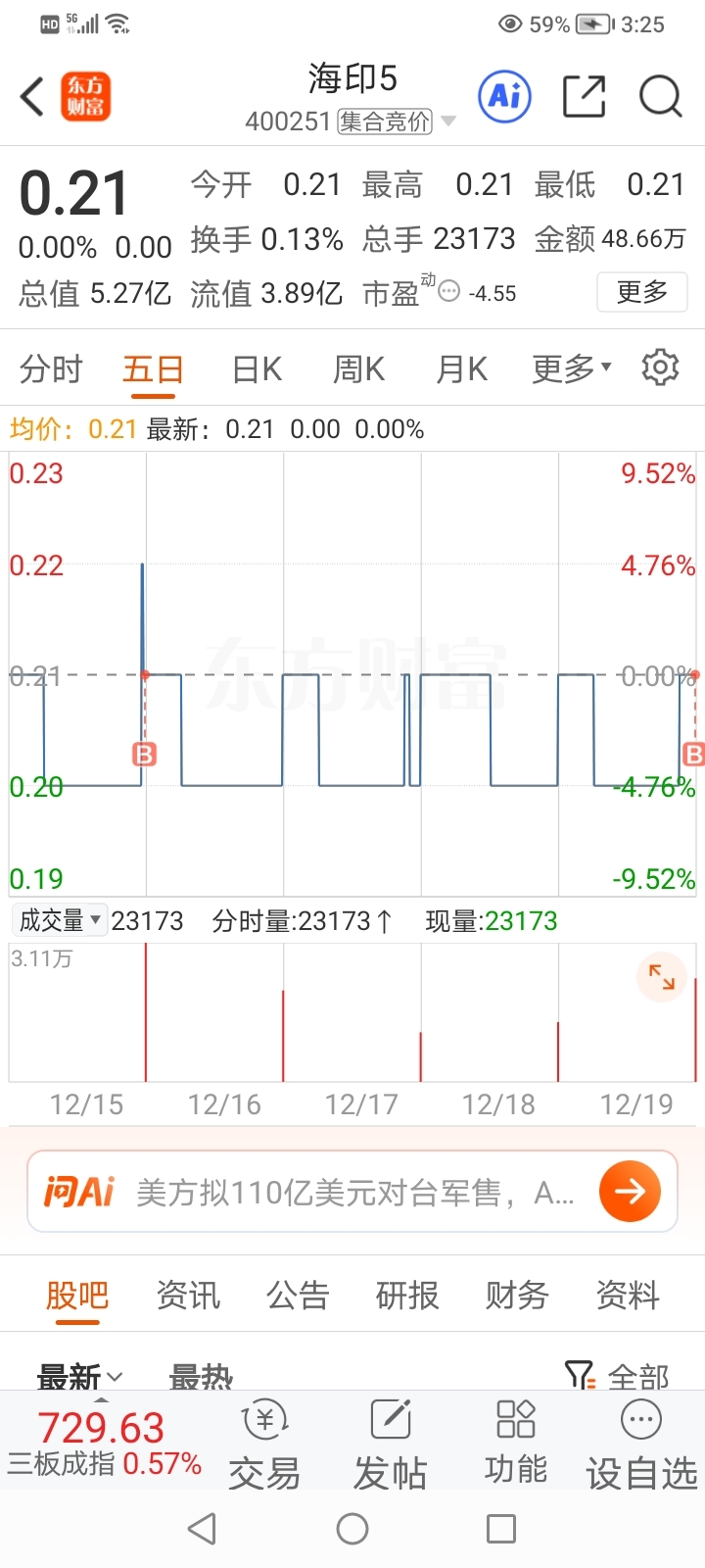 $海印5(SZ400251)$ 本来是21不想买,怎么成了。