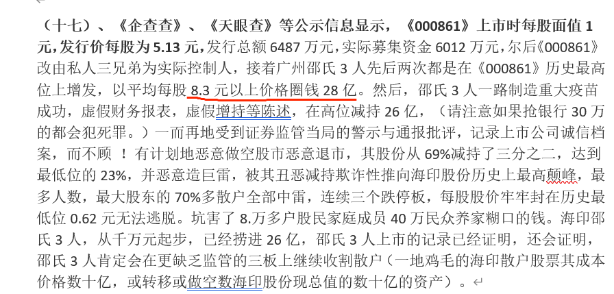 海印借壳上市,所谓“圈钱28亿”,其中近20亿都是海印实业自己掏的(海印资产注入同其他上市企业不一样,注入的优质资产有活跃交易市场,变现相对容易),剩余8个多亿也是定向增发(而且这8个多亿也是上市公司用了),所以从所谓圈钱角度都没坑散户,散户买入海印股票也是“股市有风险,投资需谨慎”自行市场化买入,用这个市场风险去套“恶意退市”,法院判胜诉机率有多大?