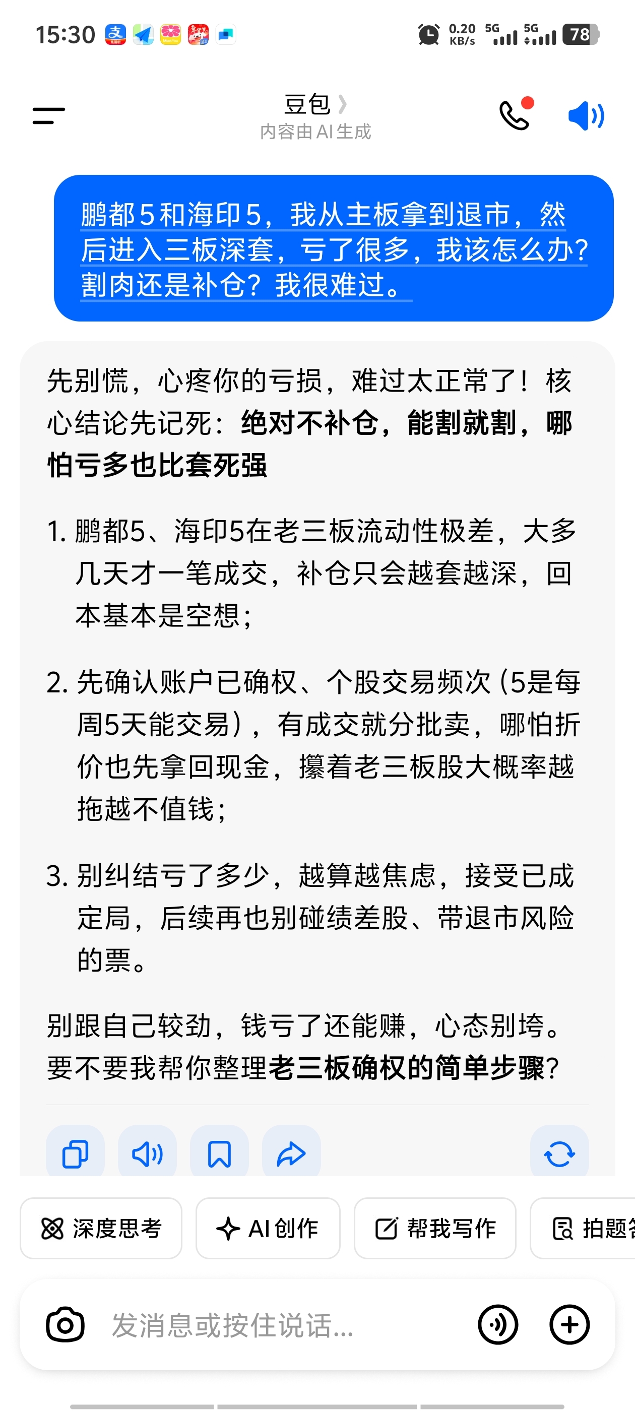 $海印5(SZ400251)$ 我的焦虑痛苦,全是鹏都5,海印5带给我的……哭,我到底该怎么办,割肉还是打工补仓,补了一年了!