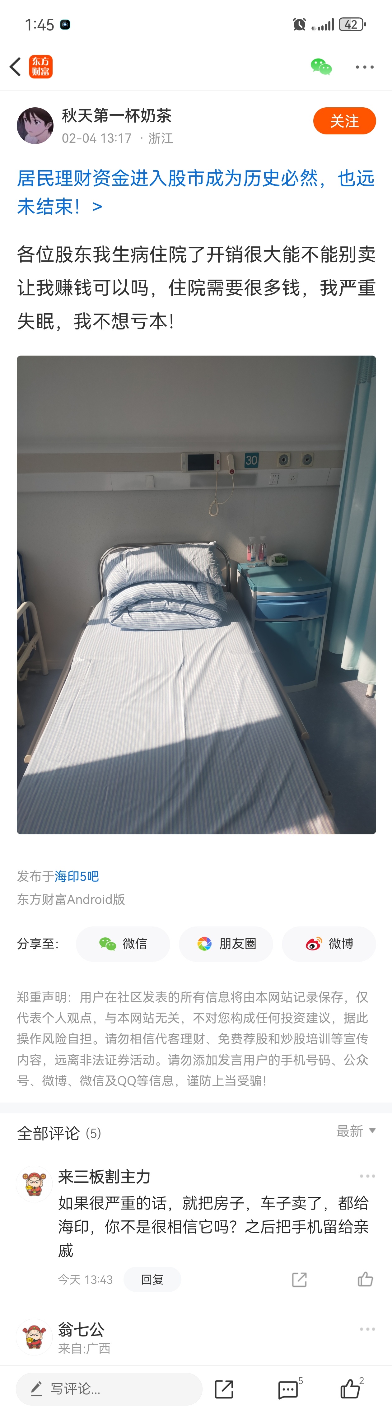 温馨提示: 1.根据《证券法》规定,禁止编造、传播虚假信息或者误导性信息,扰乱证券市场;2.用户在本社区发表的所有资料、言论等仅代表个人观点,与本网站立场无关,不对您构成任何投资建议。用户应基于自己的独立判断,自行决定证券投资并承担相应风险。《东方财富社区管理规定》