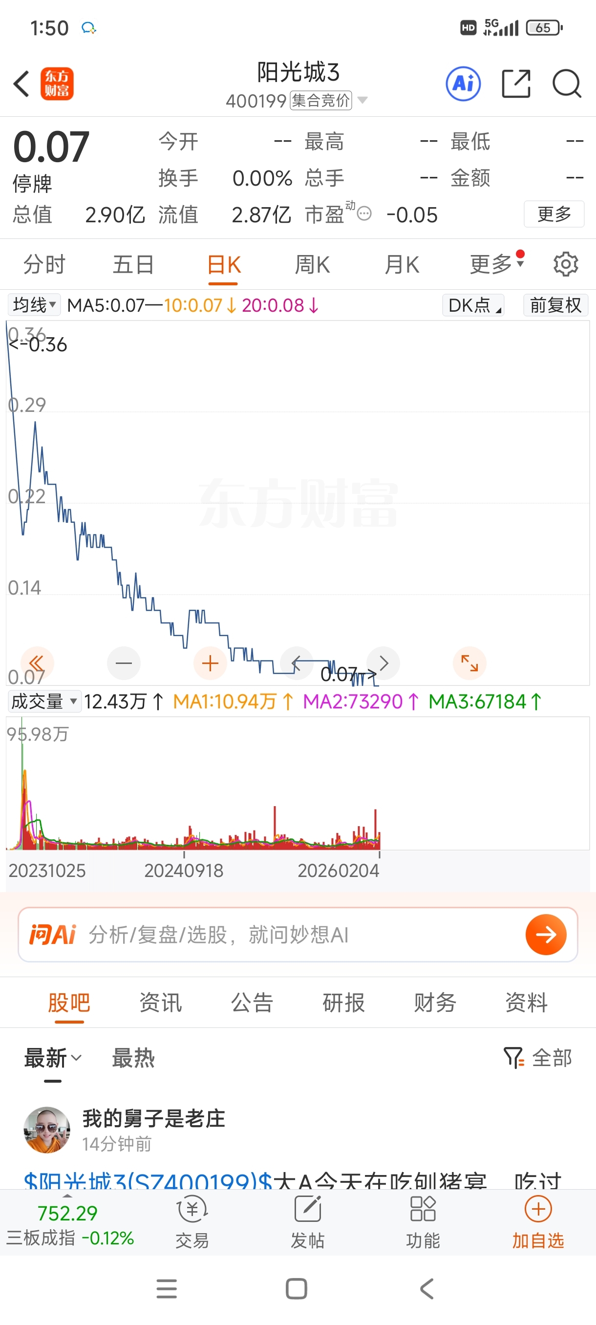 看了几个三板退市地产股,无一不是一路下跌毫无起伏的,下跌曲线平滑得一批,都是地产