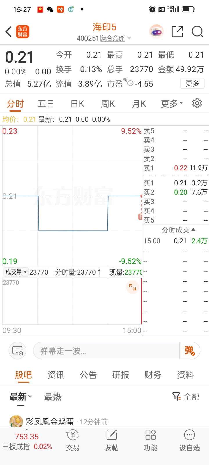 $海印5(SZ400251)$ 收货20万股,感谢兄弟姐妹们给我欢送钱来