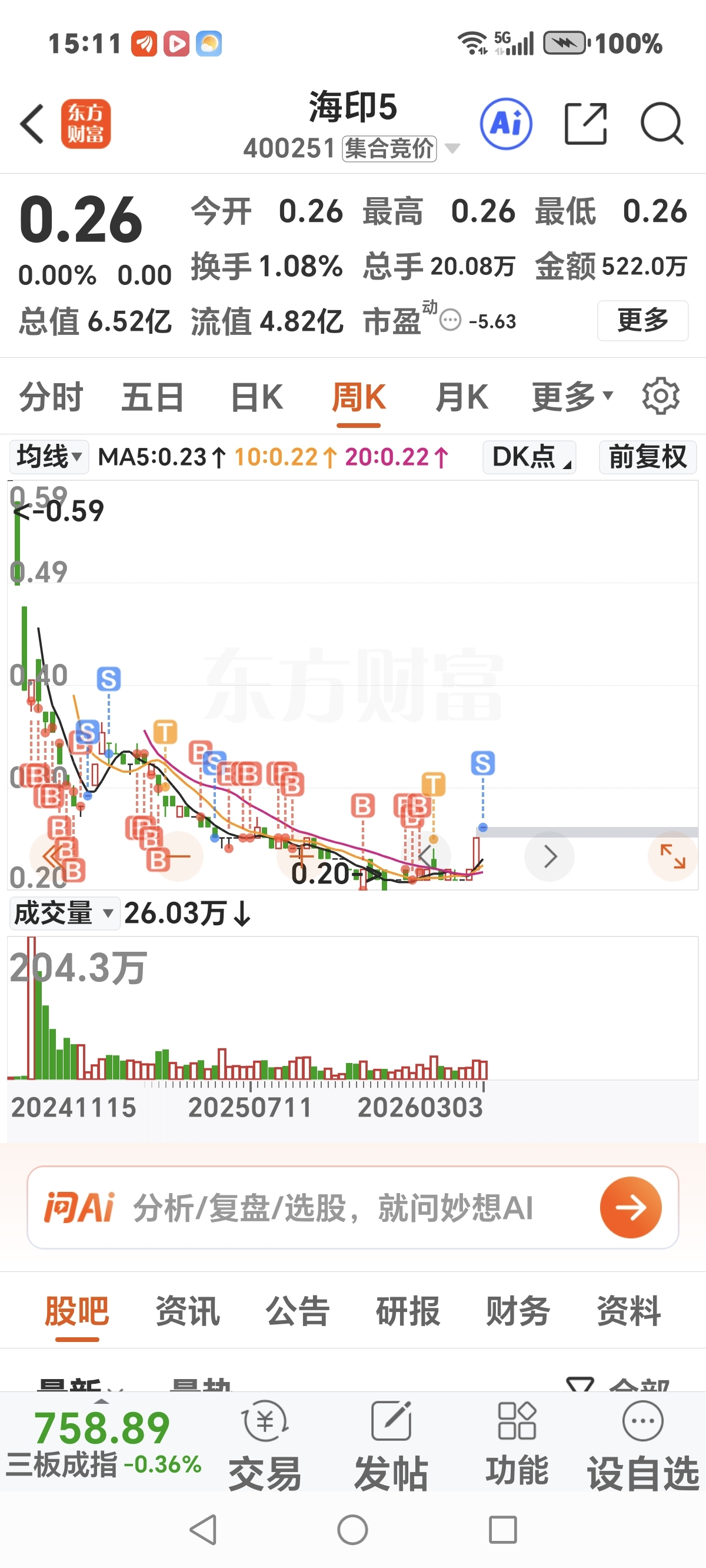 $海印5(SZ400251)$ 兄弟们先割肉一部分。