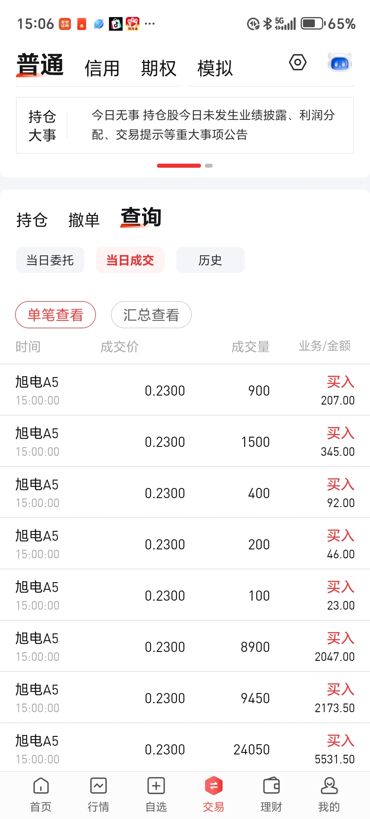 今天没有砸盘,全是散户单,不错今天又解救了这么多散户,让它们卖出后好买年货,开开