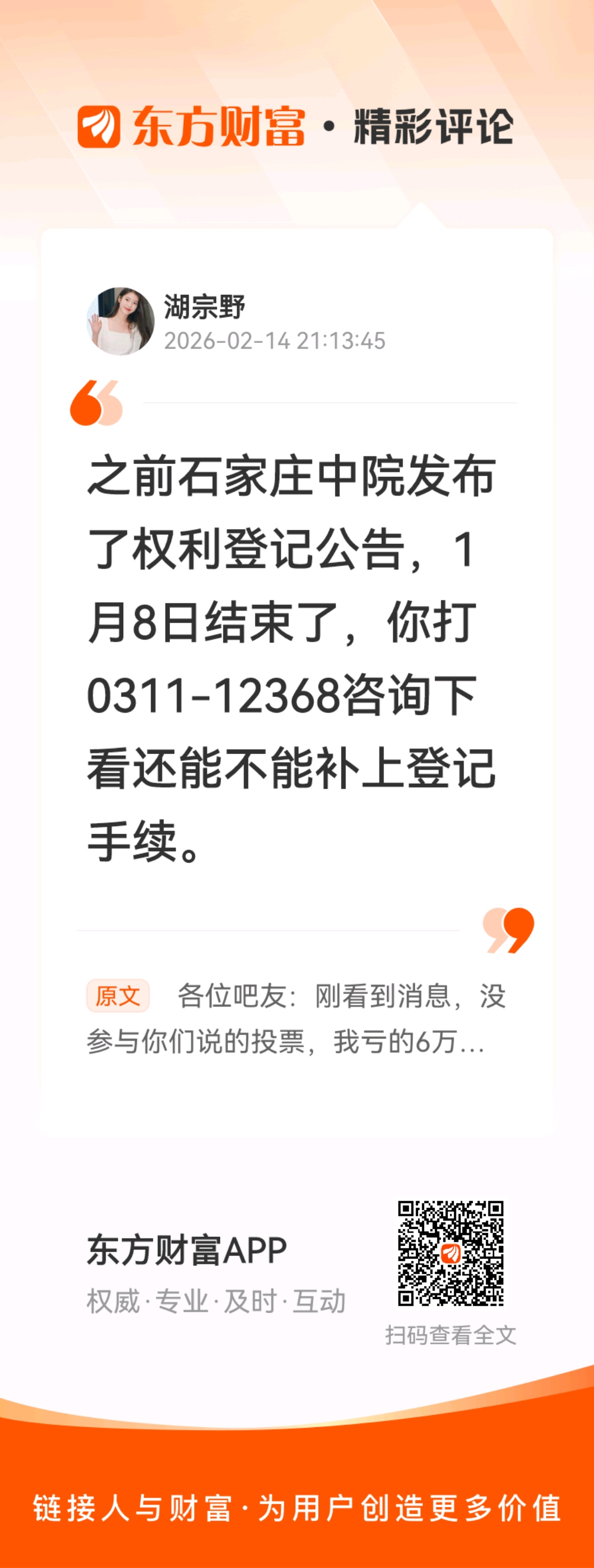 温馨提示: 1.根据《证券法》规定,禁止编造、传播虚假信息或者误导性信息,扰乱证券市场;2.用户在本社区发表的所有资料、言论等仅代表个人观点,与本网站立场无关,不对您构成任何投资建议。用户应基于自己的独立判断,自行决定证券投资并承担相应风险。《东方财富社区管理规定》