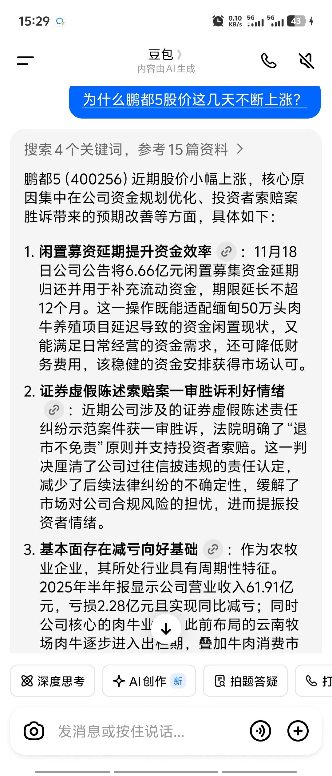 $鹏都5(SZ400256)$ 问了问豆包。看来上涨还真是有原因,