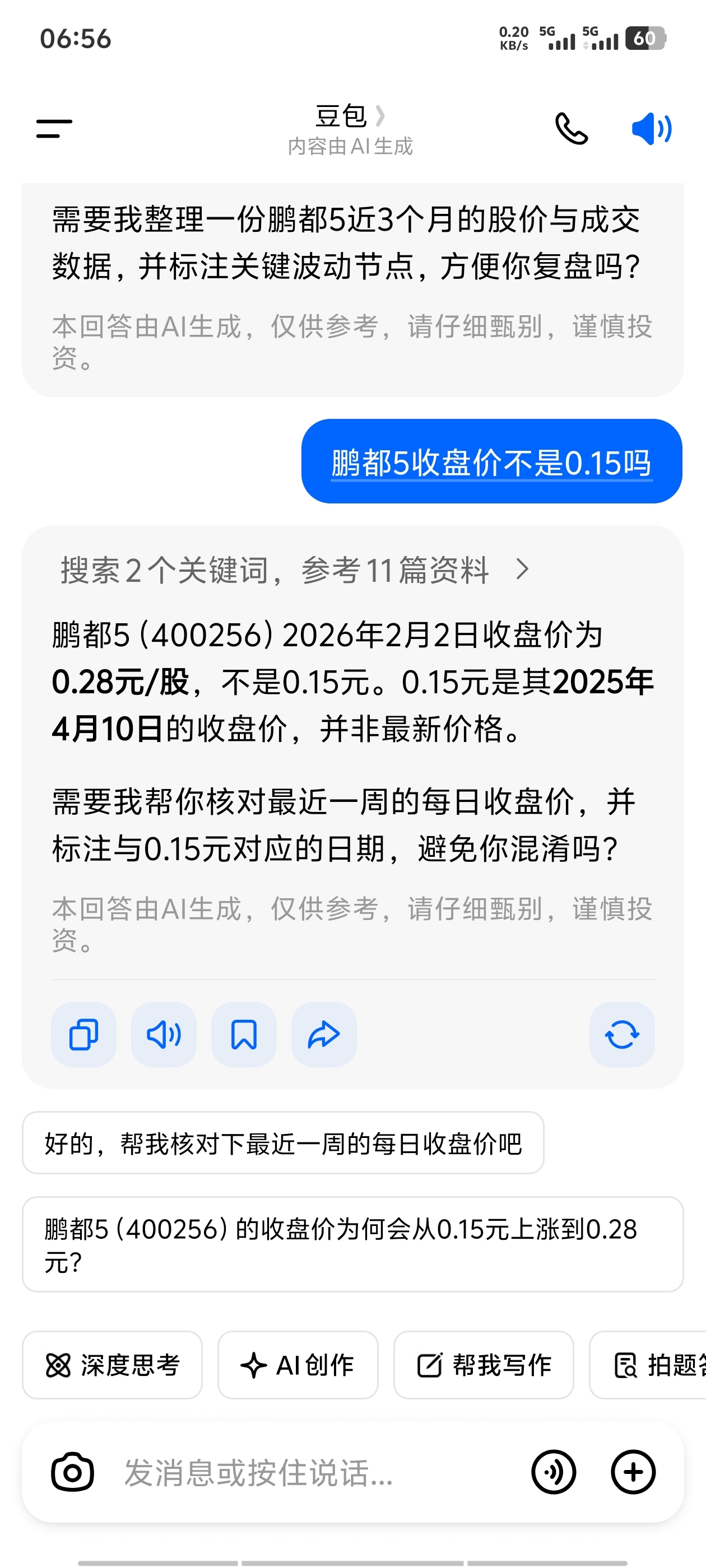 $鹏都5(SZ400256)$ 建议都卸载豆包,要是0.28我都回本了